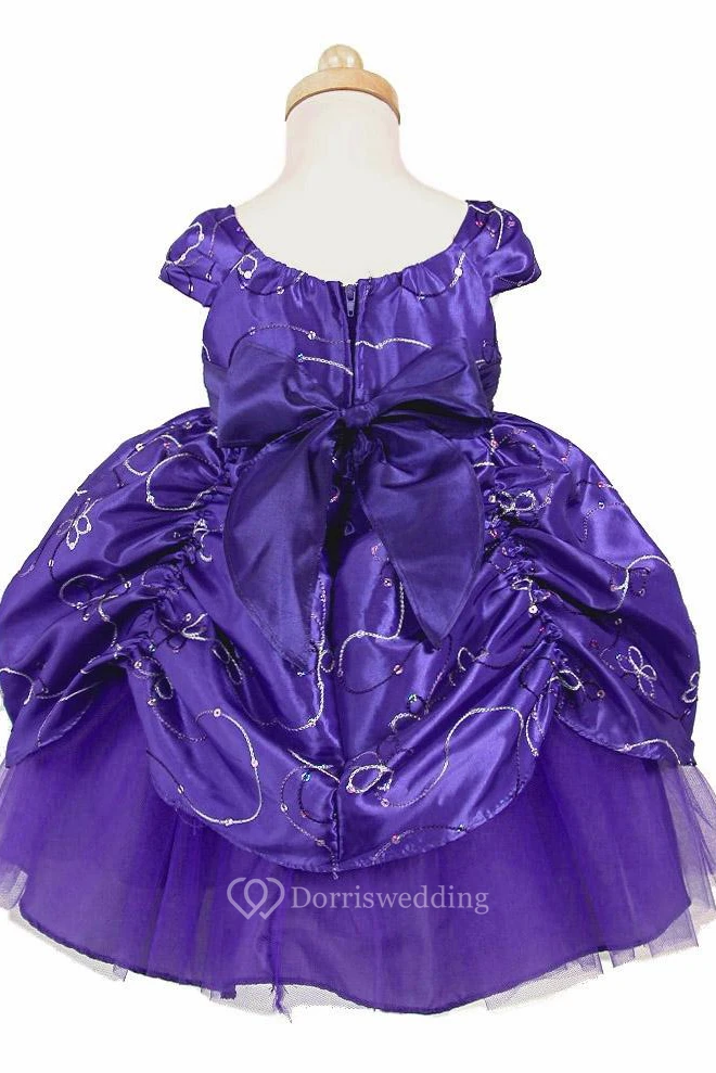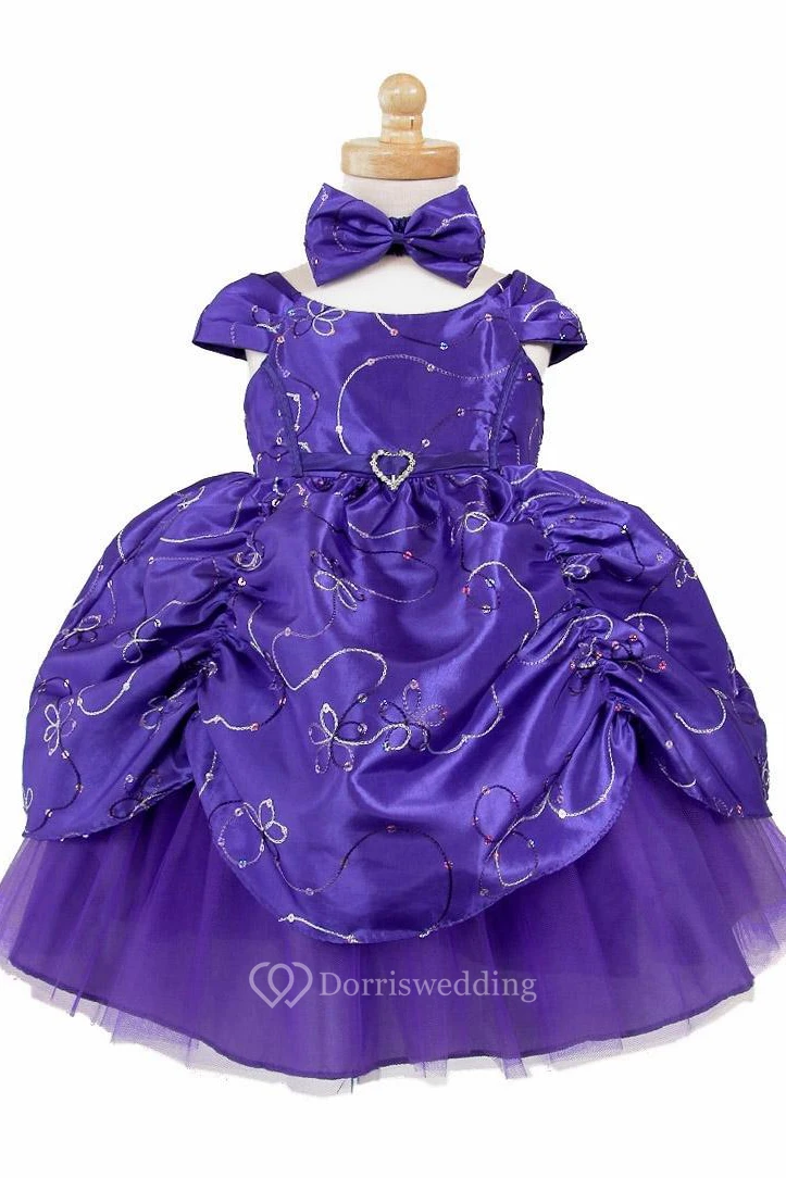 Ankle-Length Embroideried Tiered Beaded Sequins&Taffeta Flower Girl Dress With Ribbon