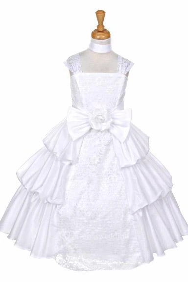 Ankle-Length Floral Bowed Lace&Taffeta Flower Girl Dress With Sash