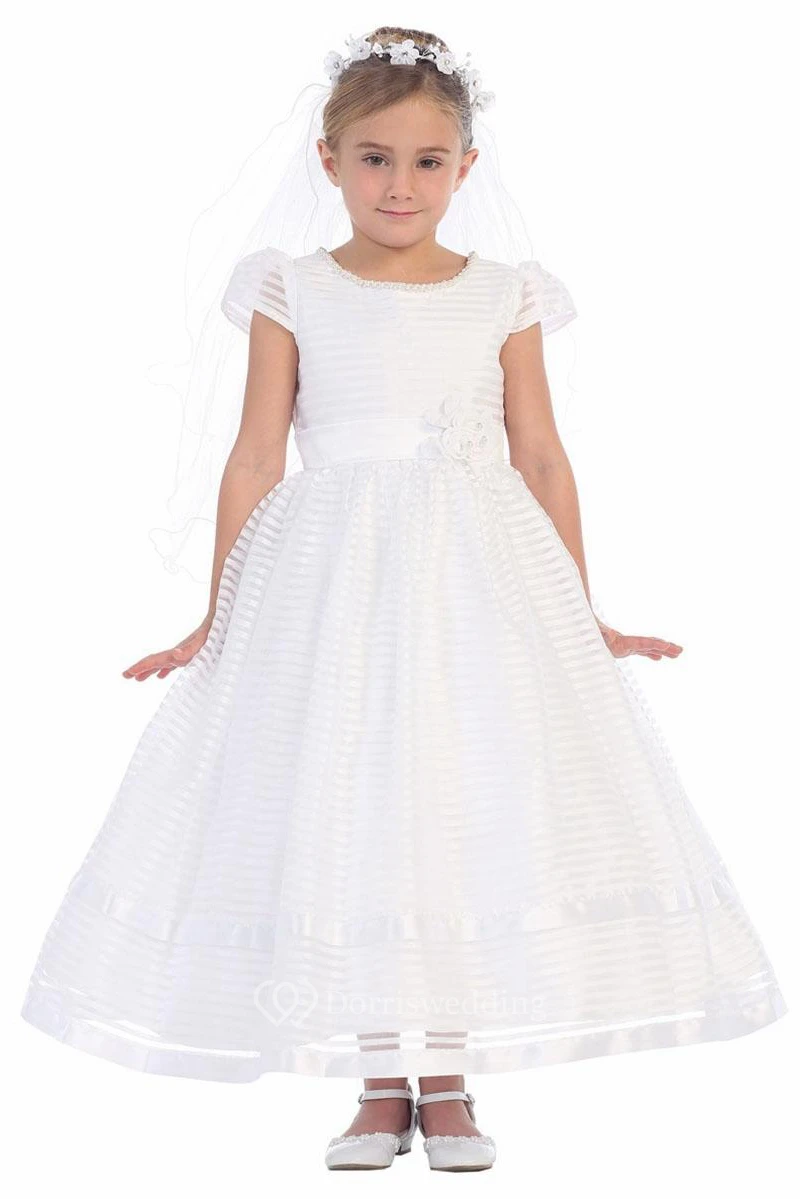 Ankle-Length Floral Floral Appliqued Organza&Satin Flower Girl Dress With Sash