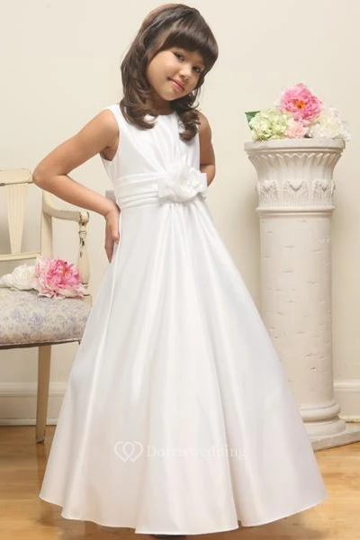 Ankle-Length Floral Floral Satin Flower Girl Dress