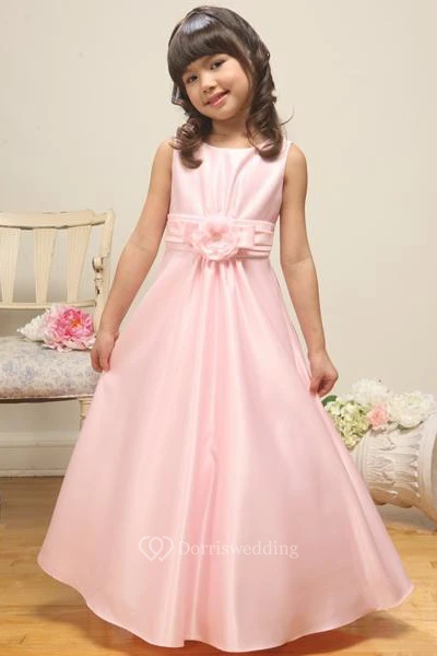 Ankle-Length Floral Floral Satin Flower Girl Dress