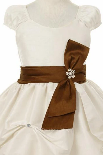 Ankle-Length Floral Tiered Bowed Flower Girl Dress With Split Front