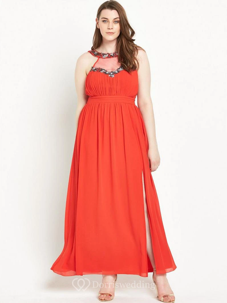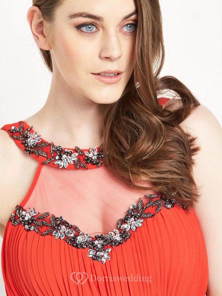 Ankle-Length Sleeveless Beaded Scoop Neck Chiffon Bridesmaid Dress