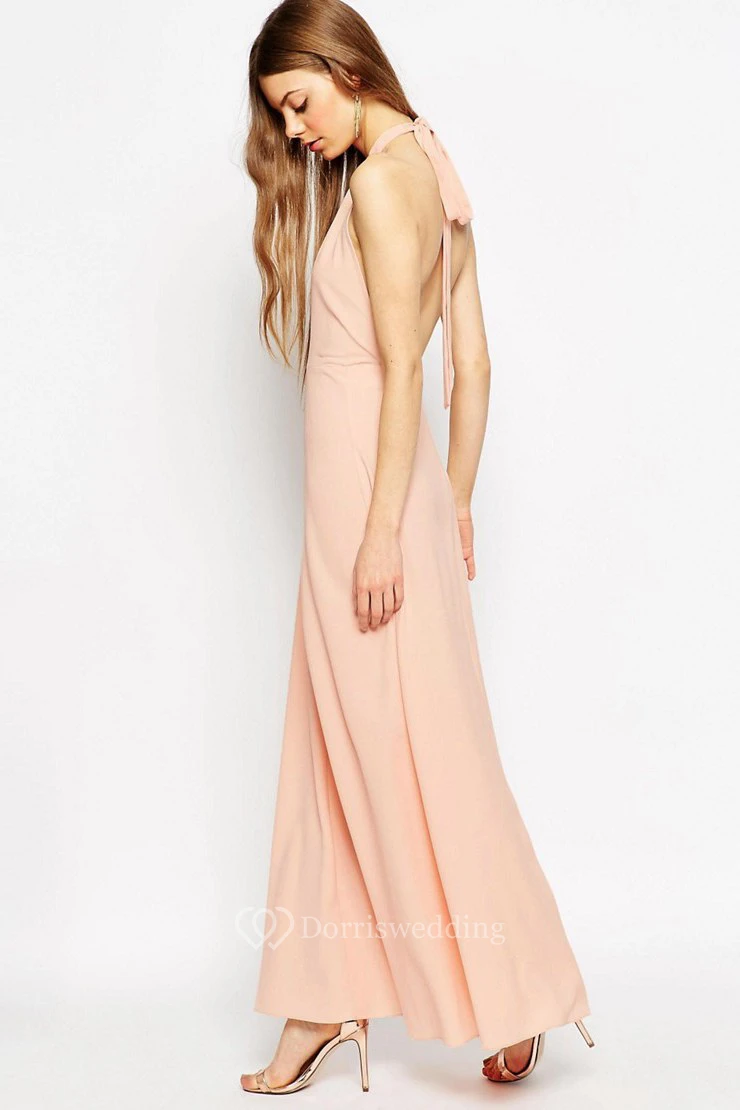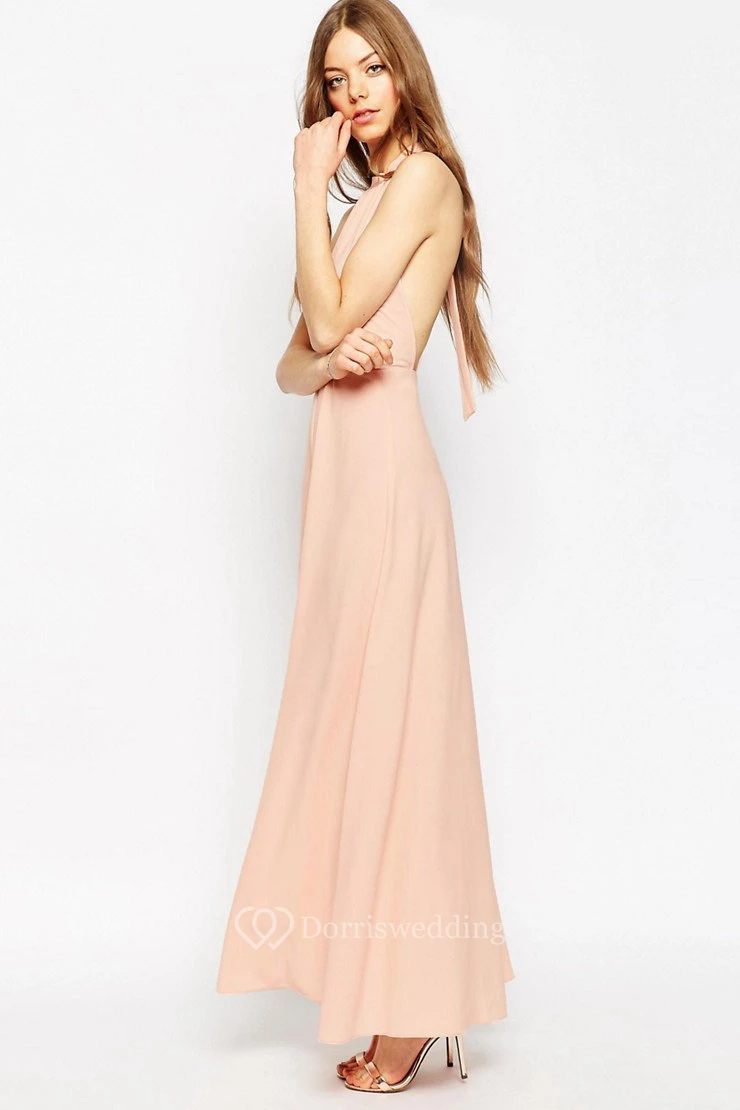 Ankle-Length Sleeveless High Neck Chiffon Bridesmaid Dress With Straps
