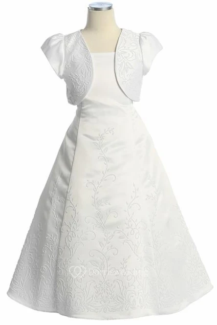 Ankle-Length Spaghetti Beaded Satin Flower Girl Dress