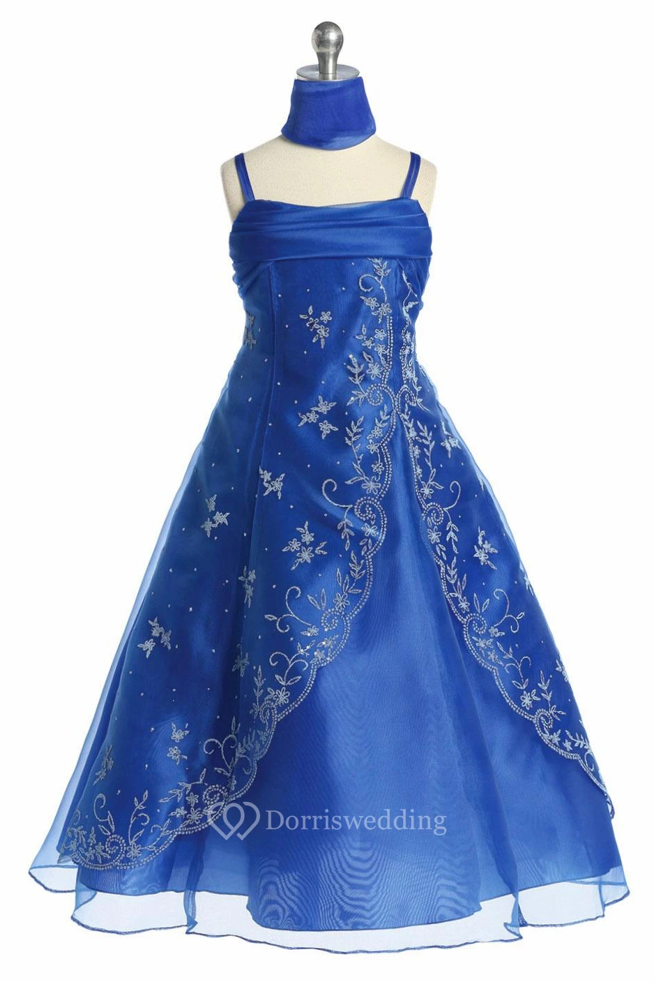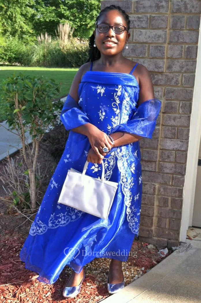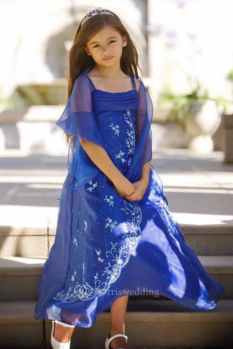Ankle-Length Spaghetti Cape Beaded Organza Flower Girl Dress