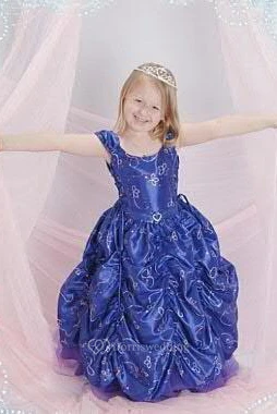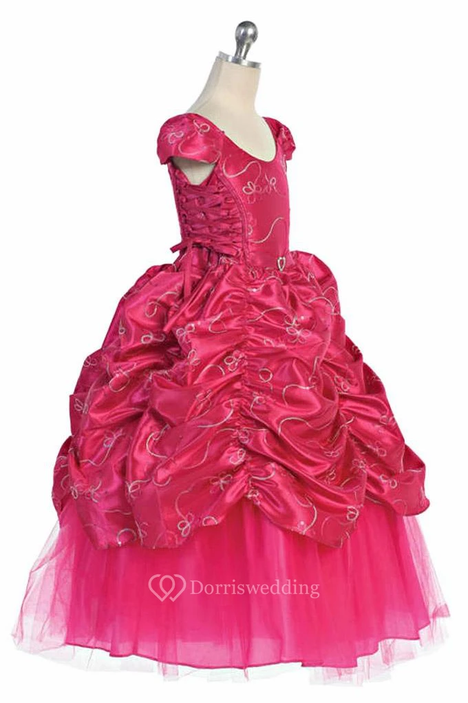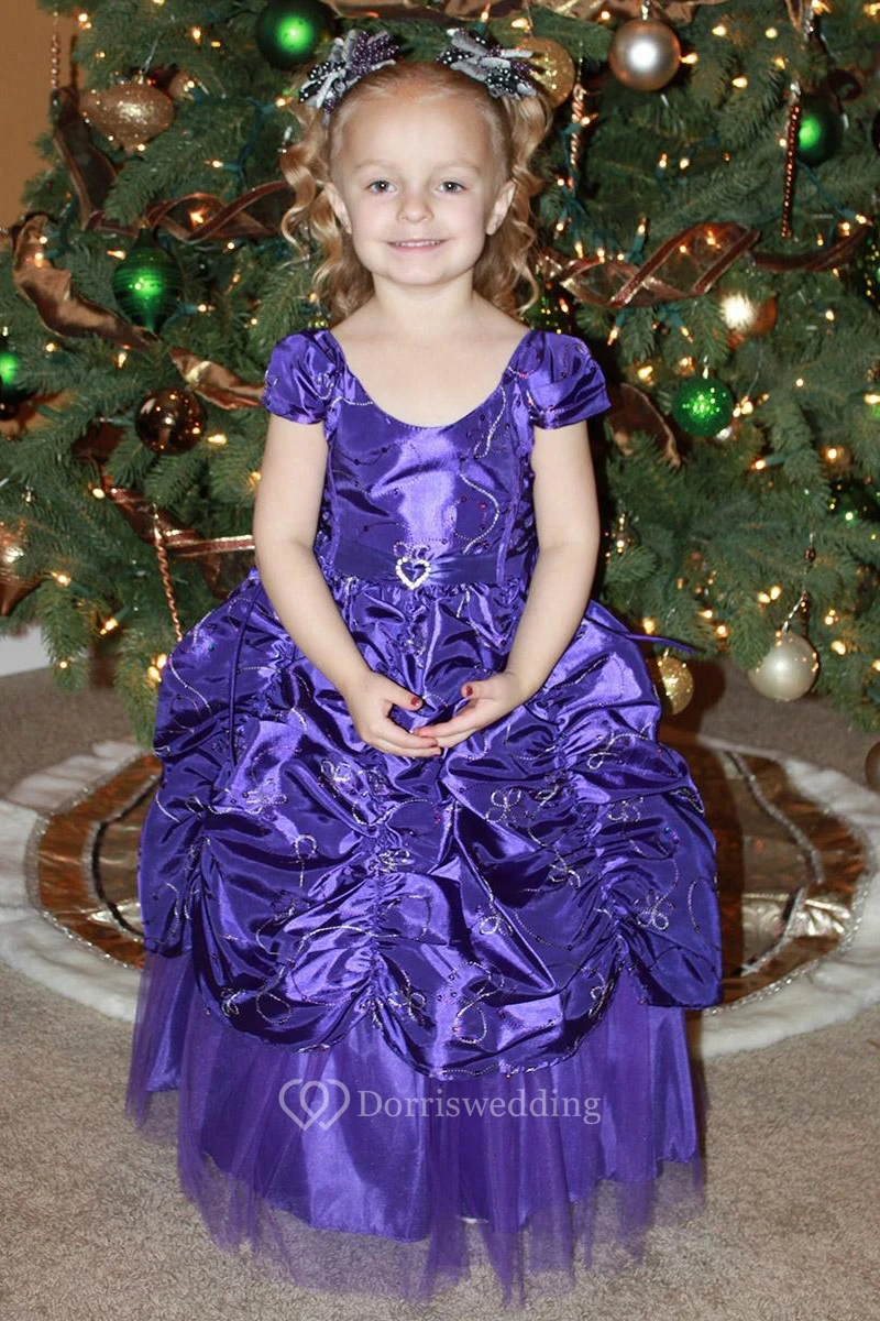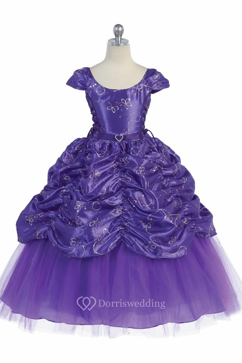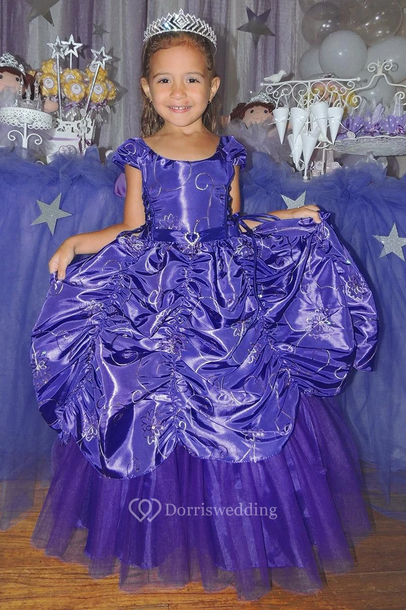 Ankle-Length Tiered Embroideried Lace&Taffeta Flower Girl Dress With Broach