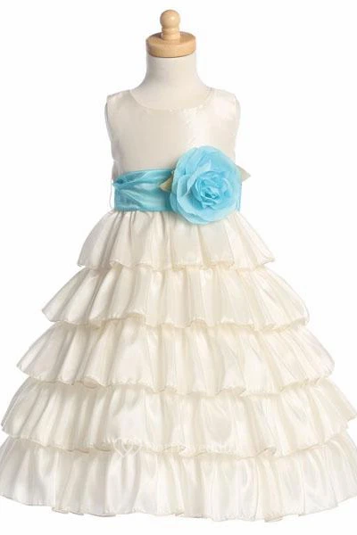 Ankle-Length Tiered Taffeta Flower Girl Dress