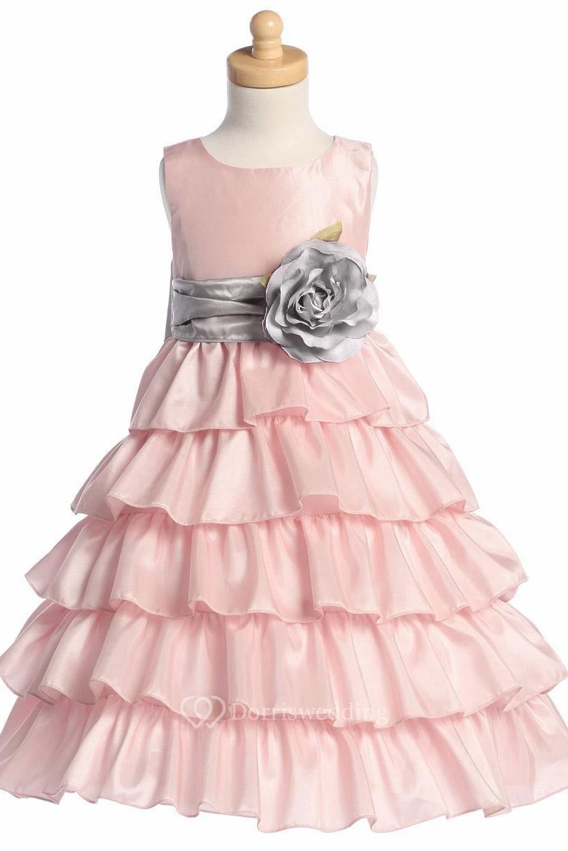 Ankle-Length Tiered Taffeta Flower Girl Dress
