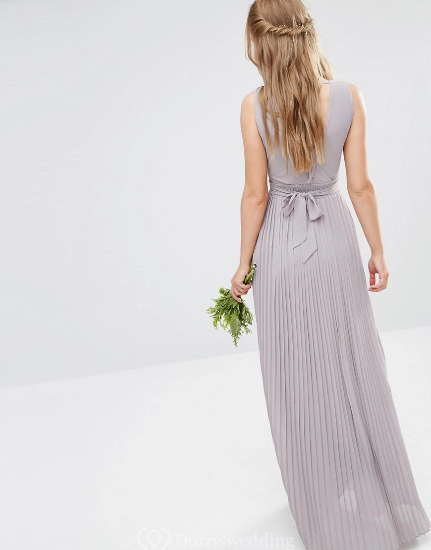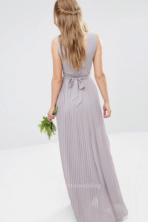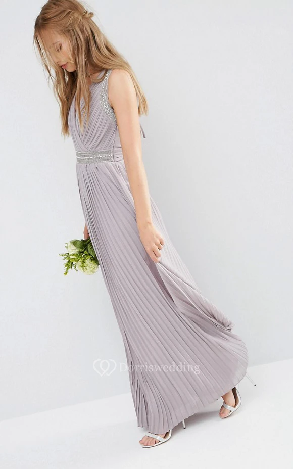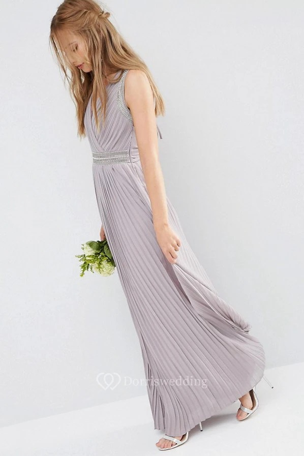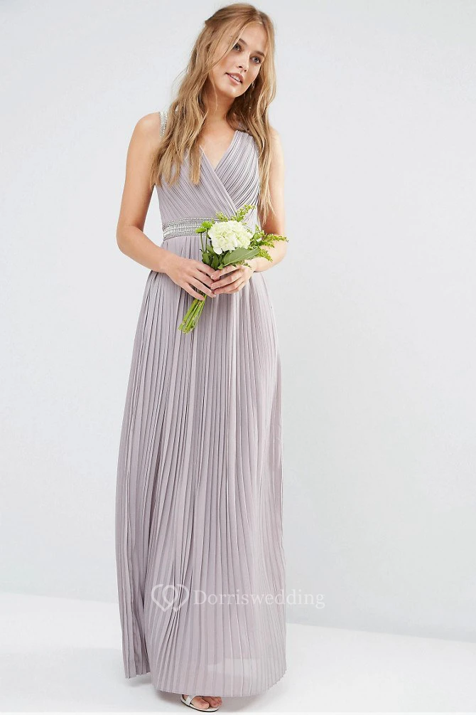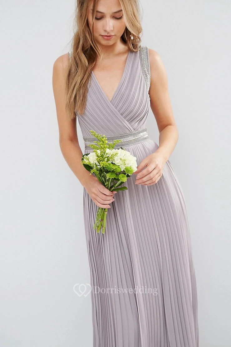Ankle-Length V-Neck Ruched Chiffon Bridesmaid Dress With Beading