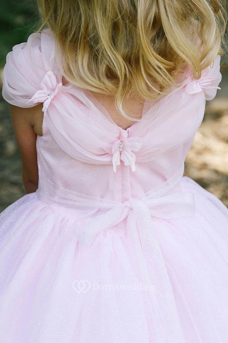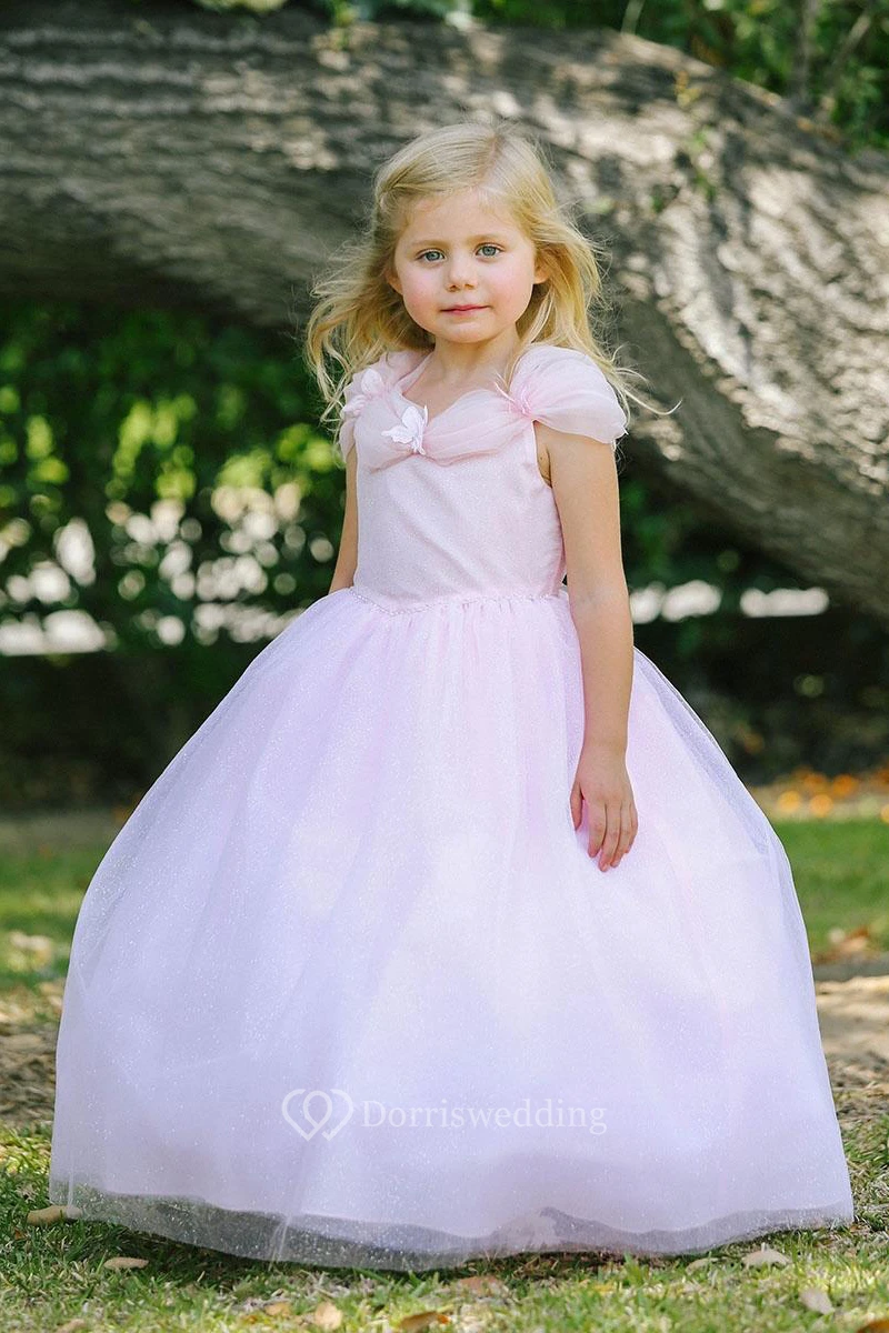 Appliqued Ruched Tulle&Organza Flower Girl Dress With Tiers