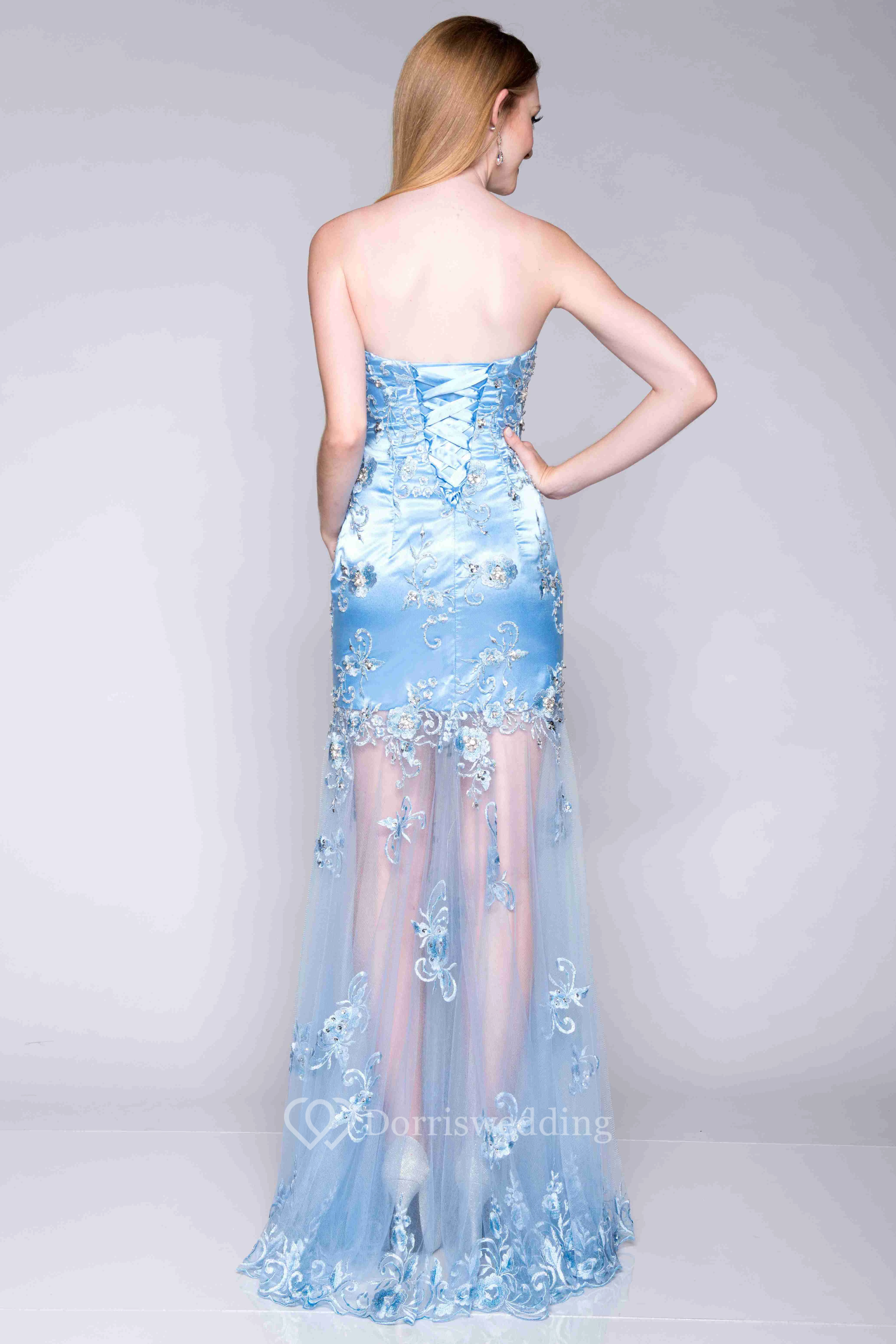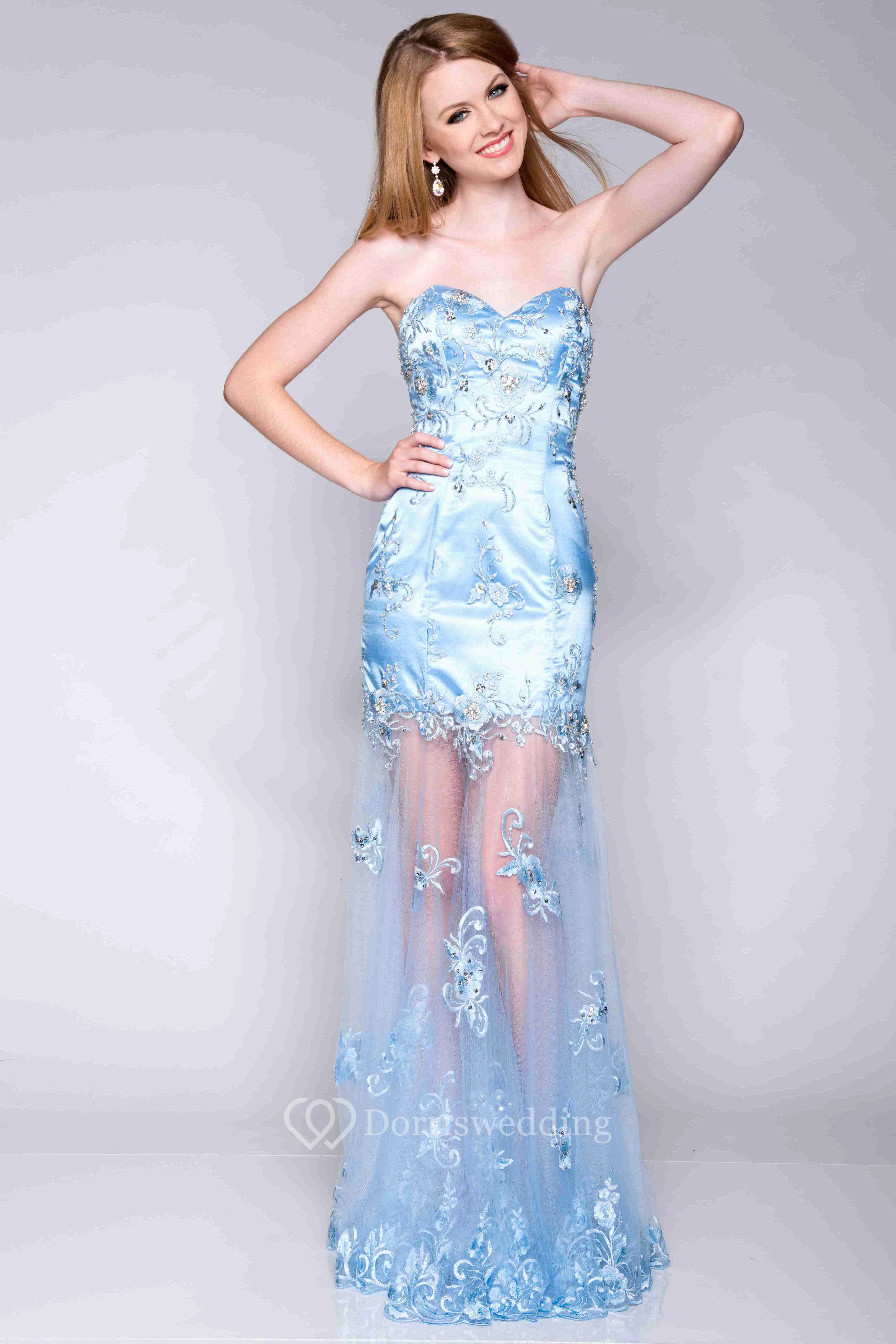 Appliqued Satin And Tulle Sheath Prom Dress With Sweetheart Neck