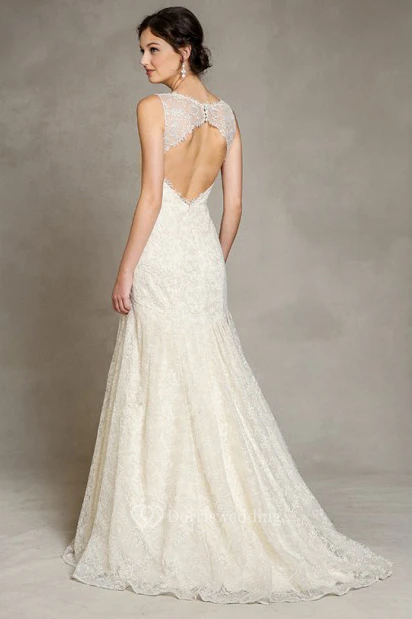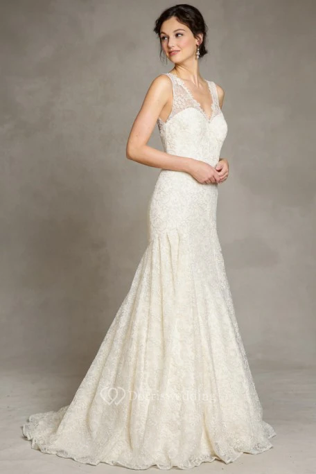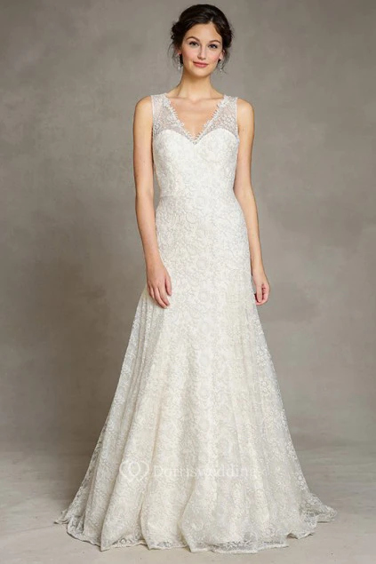 Appliqued Sleeveless Floor-Length V-Neck Lace Wedding Dress
