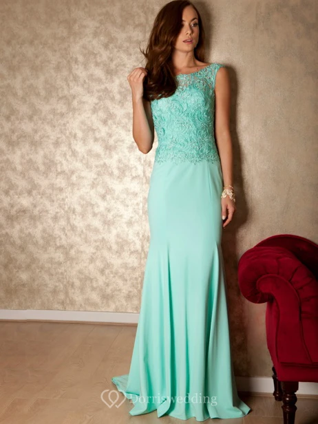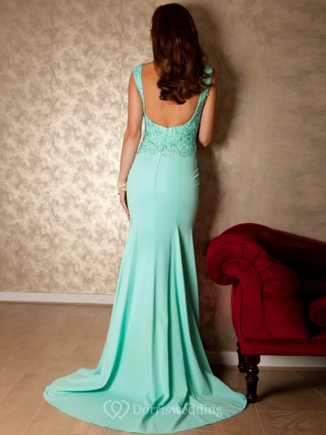 Appliqued Sleeveless Scoop Neck Chiffon Prom Dress With Brush Train