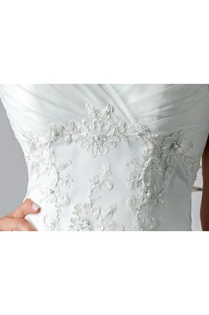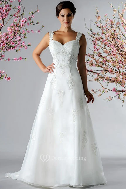 Appliqued Straps A-Line Tulle Bridal Gown With Criss Cross Top