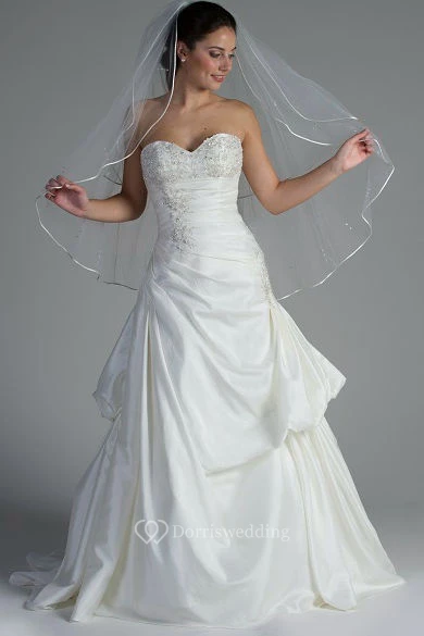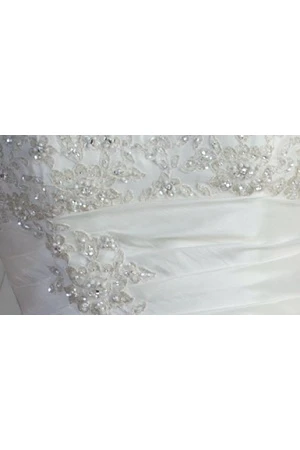 Appliqued Sweetheart Bodice Taffeta Bridal Gown With Ruffled Skirt