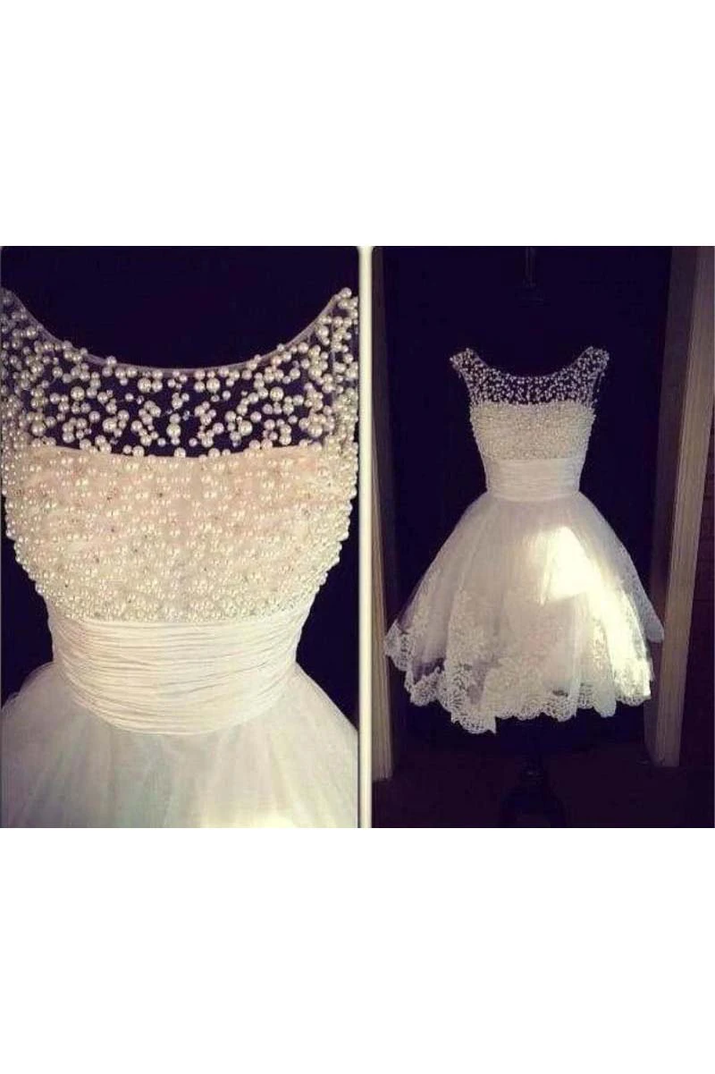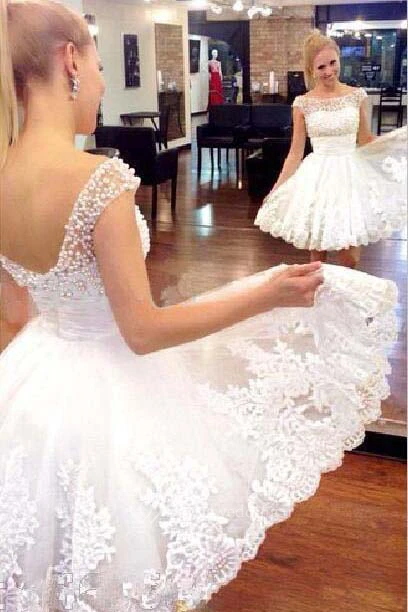 Appliques Summer Beach Vintage Sheer neck Short Sleeves Wedding Dress
