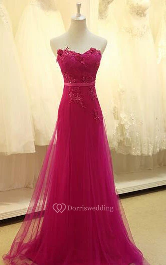 Appliques Sweetheart Pleated Chiffon Tulle Lace Dress