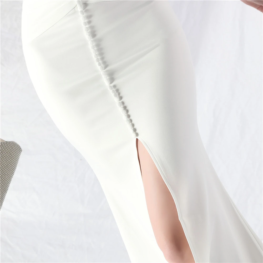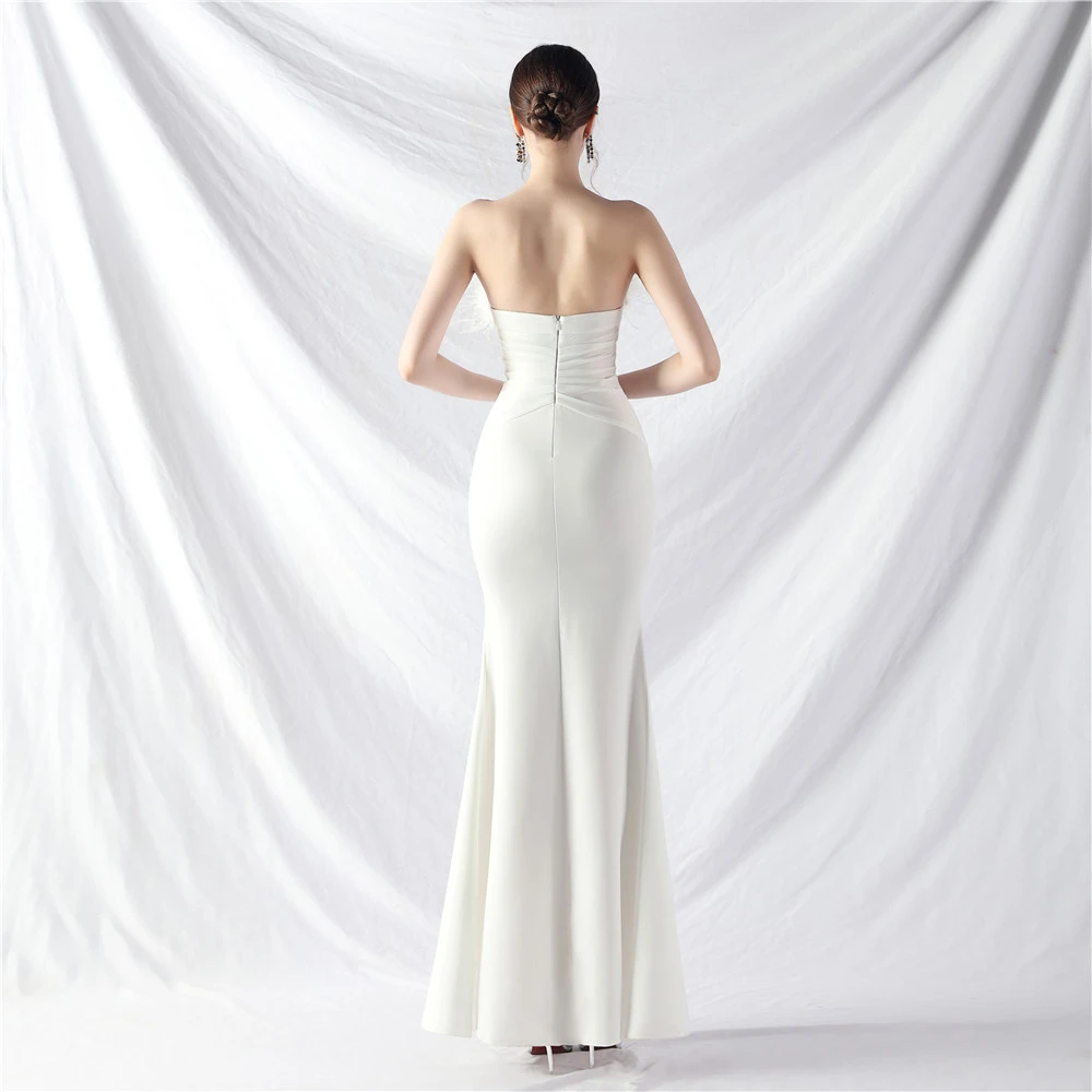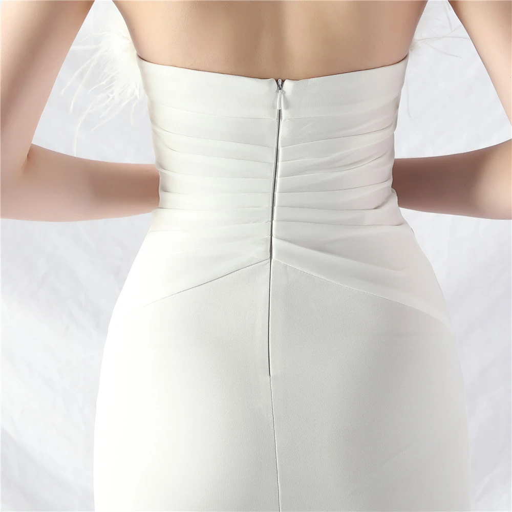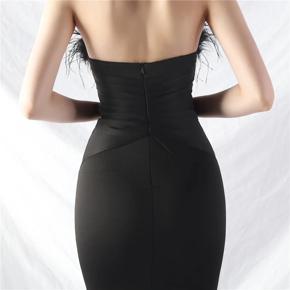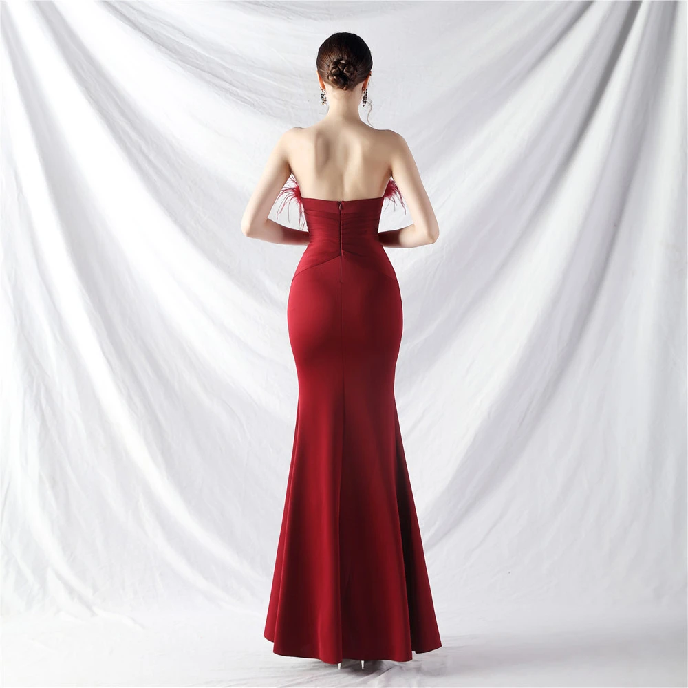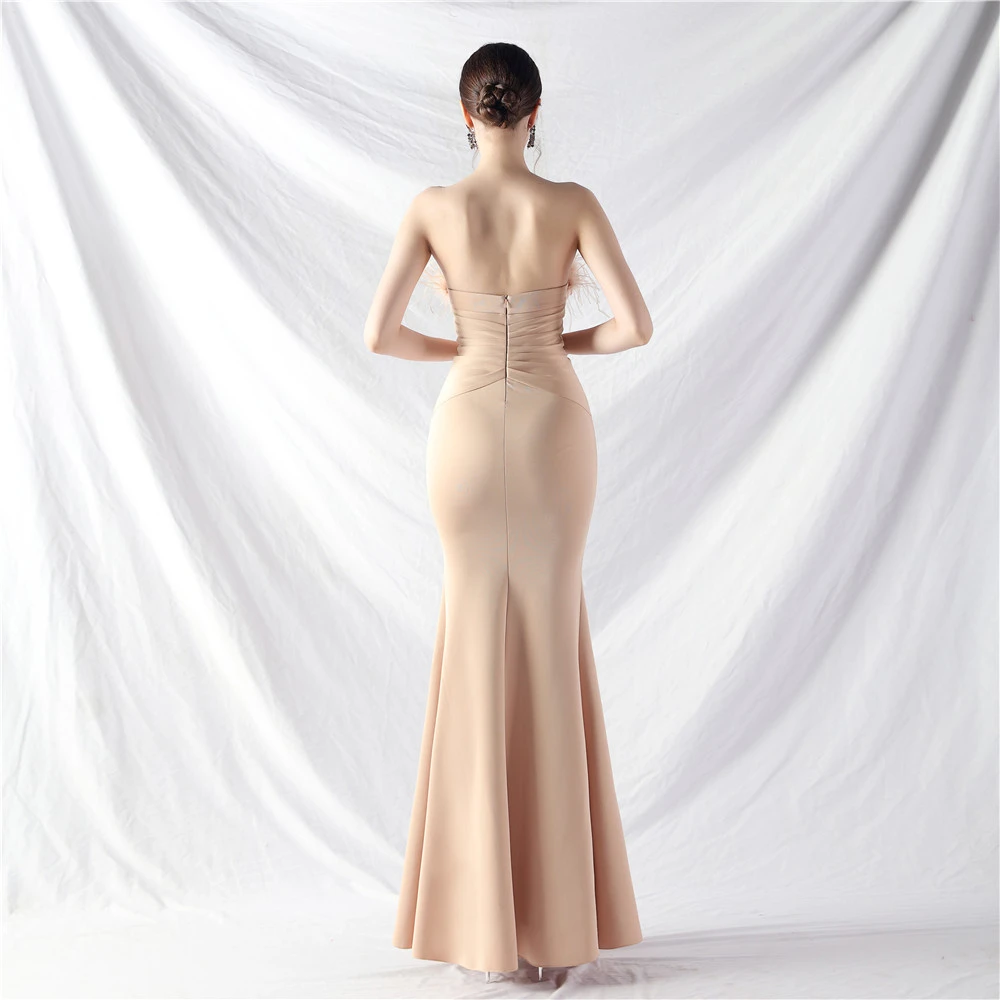 Artistic Buckle Hand-Made Ostrich Feather Satin Long Evening Dress