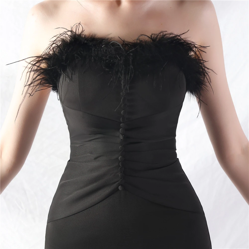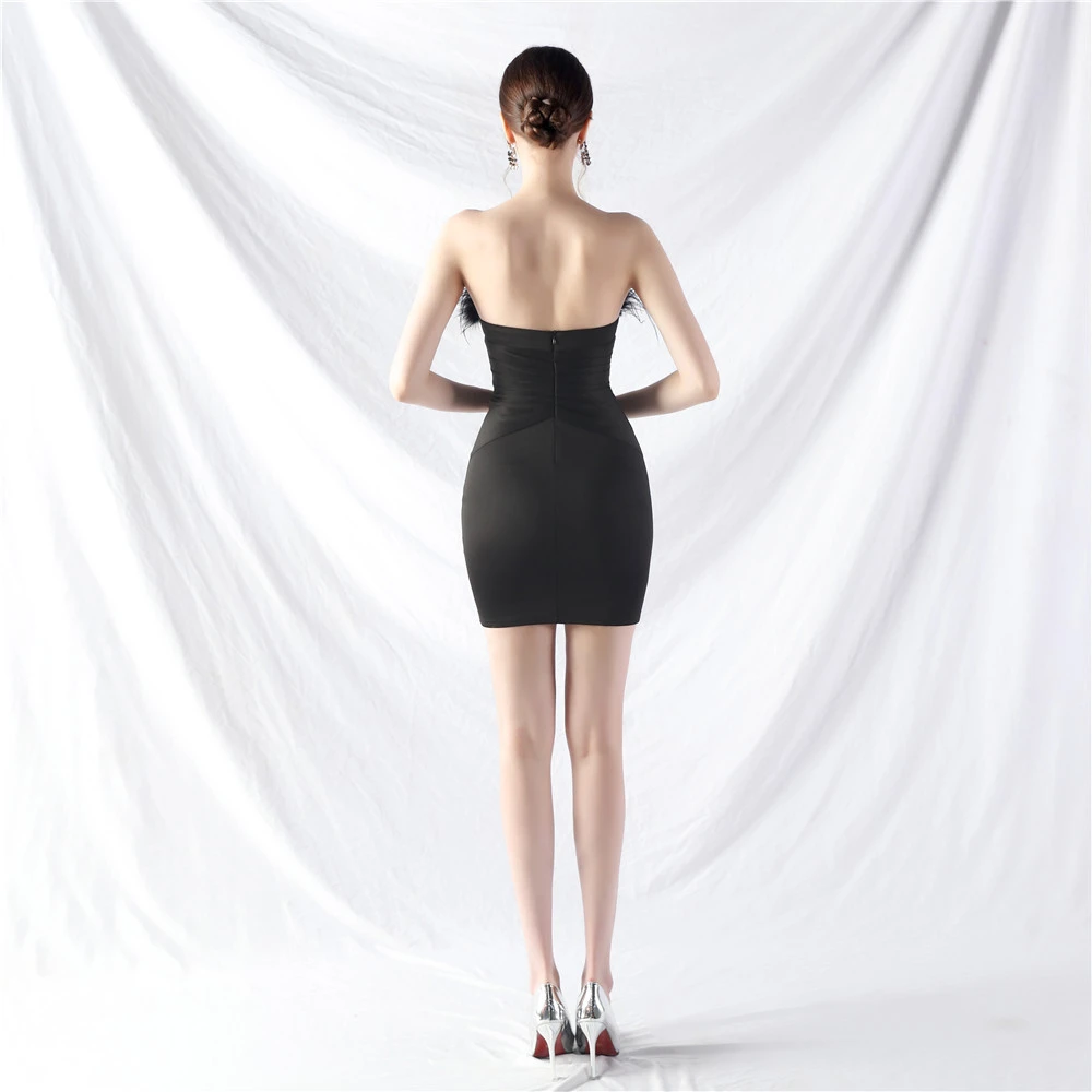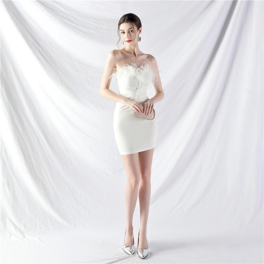 Artistic Inch-Mouth Ostrich Feather Short Hip-Wrapped Dress