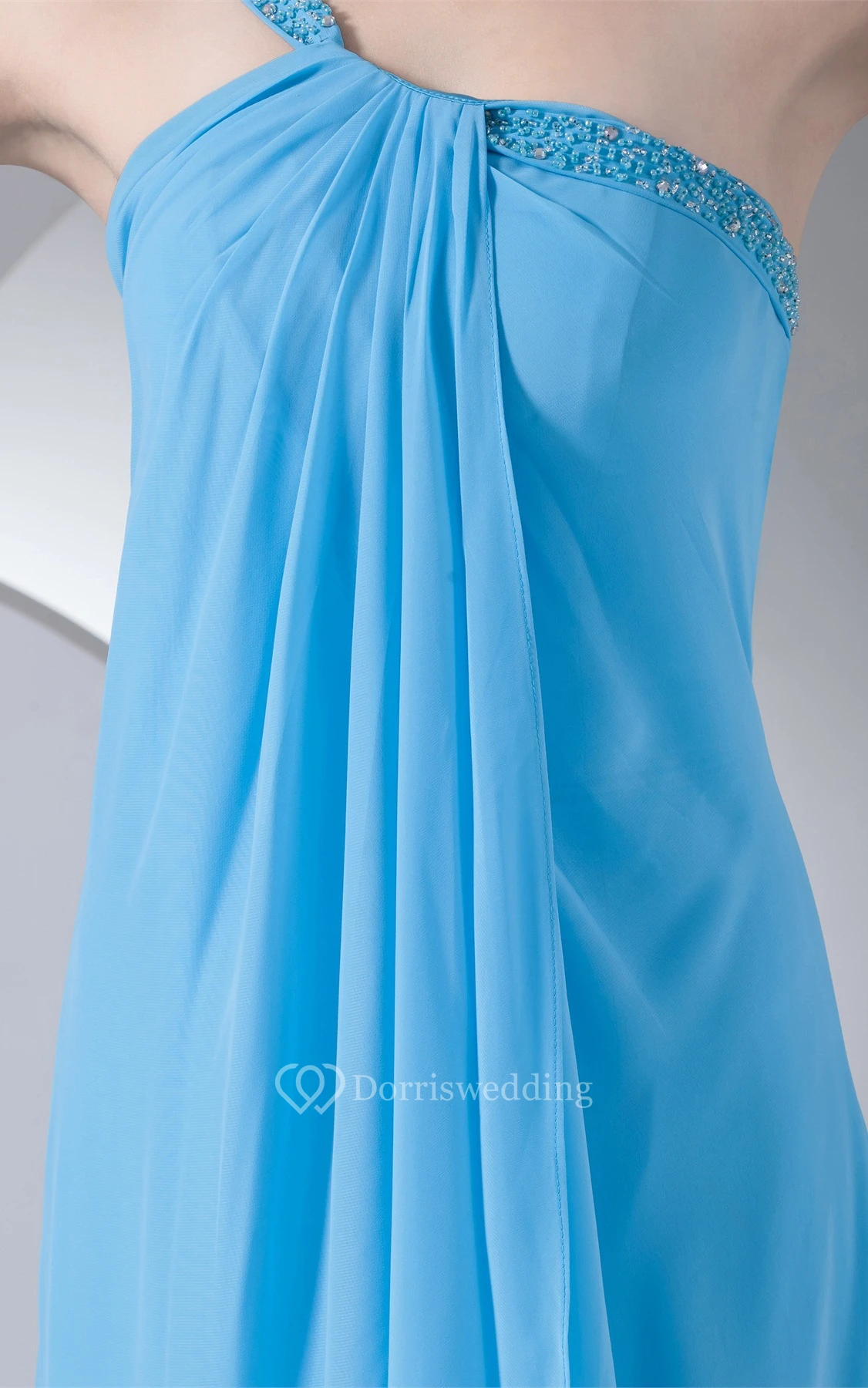 Asymmetrical Draping Sheath One-Shoulder Side Zipper Back and Gown With Beadings