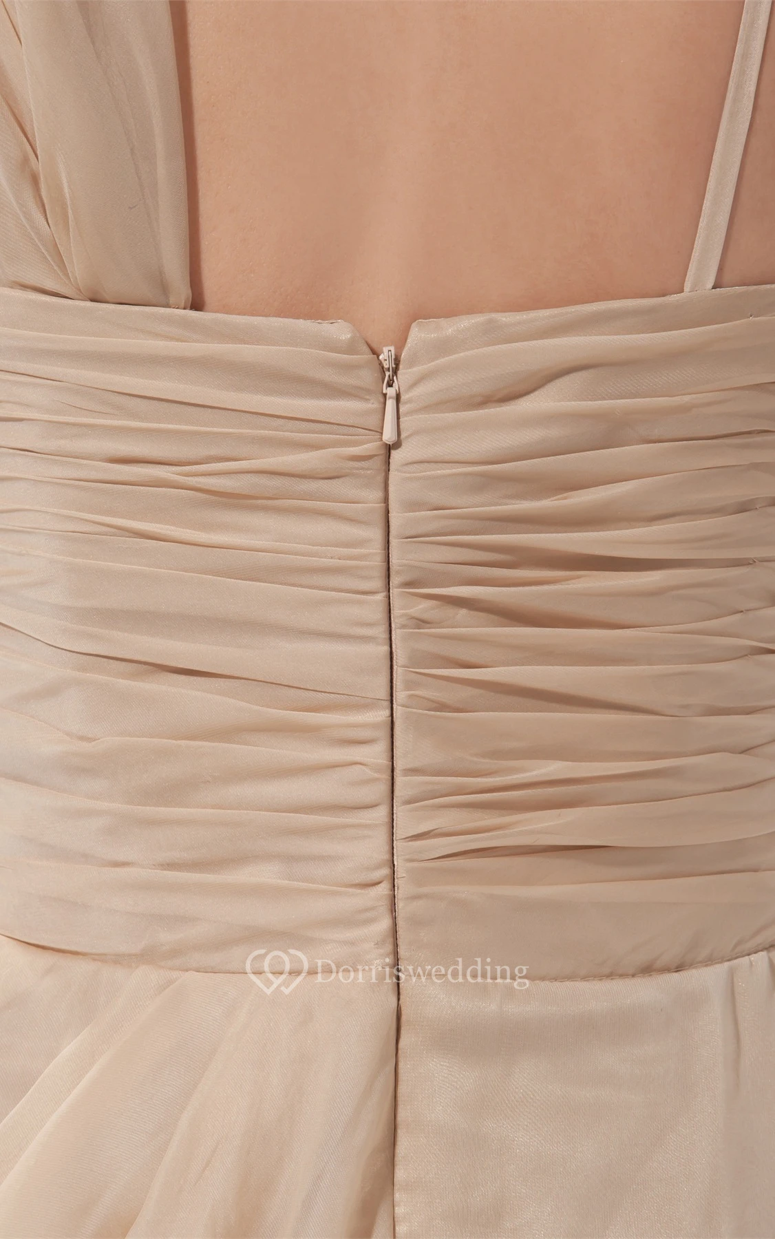 Asymmetrical Floor-Length Ruched Sweep Train and Gown With Draping