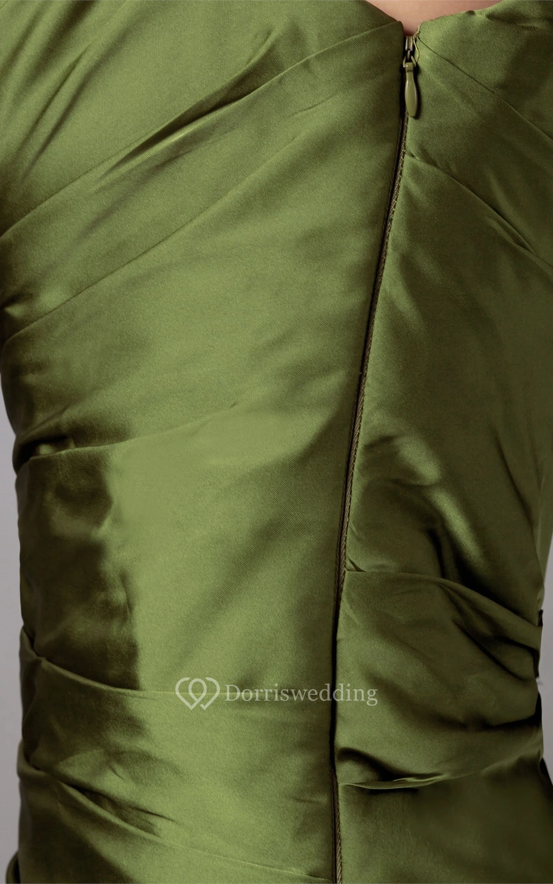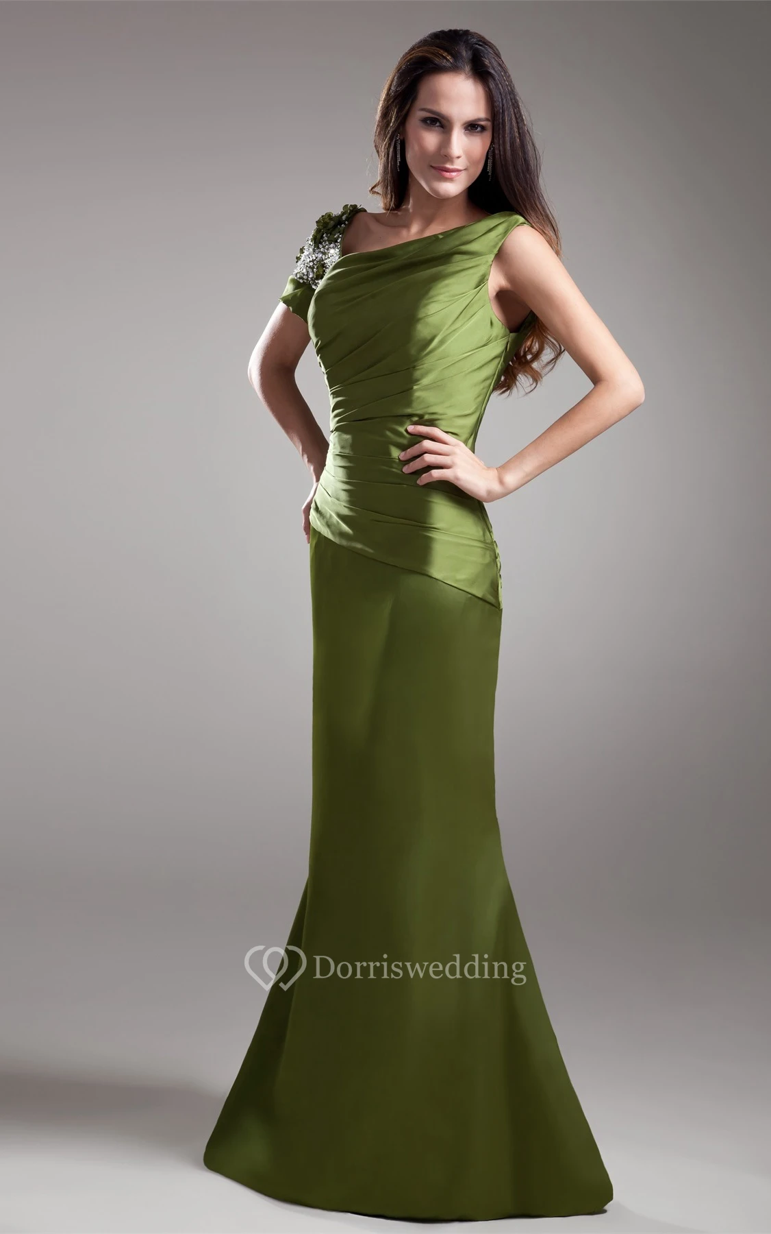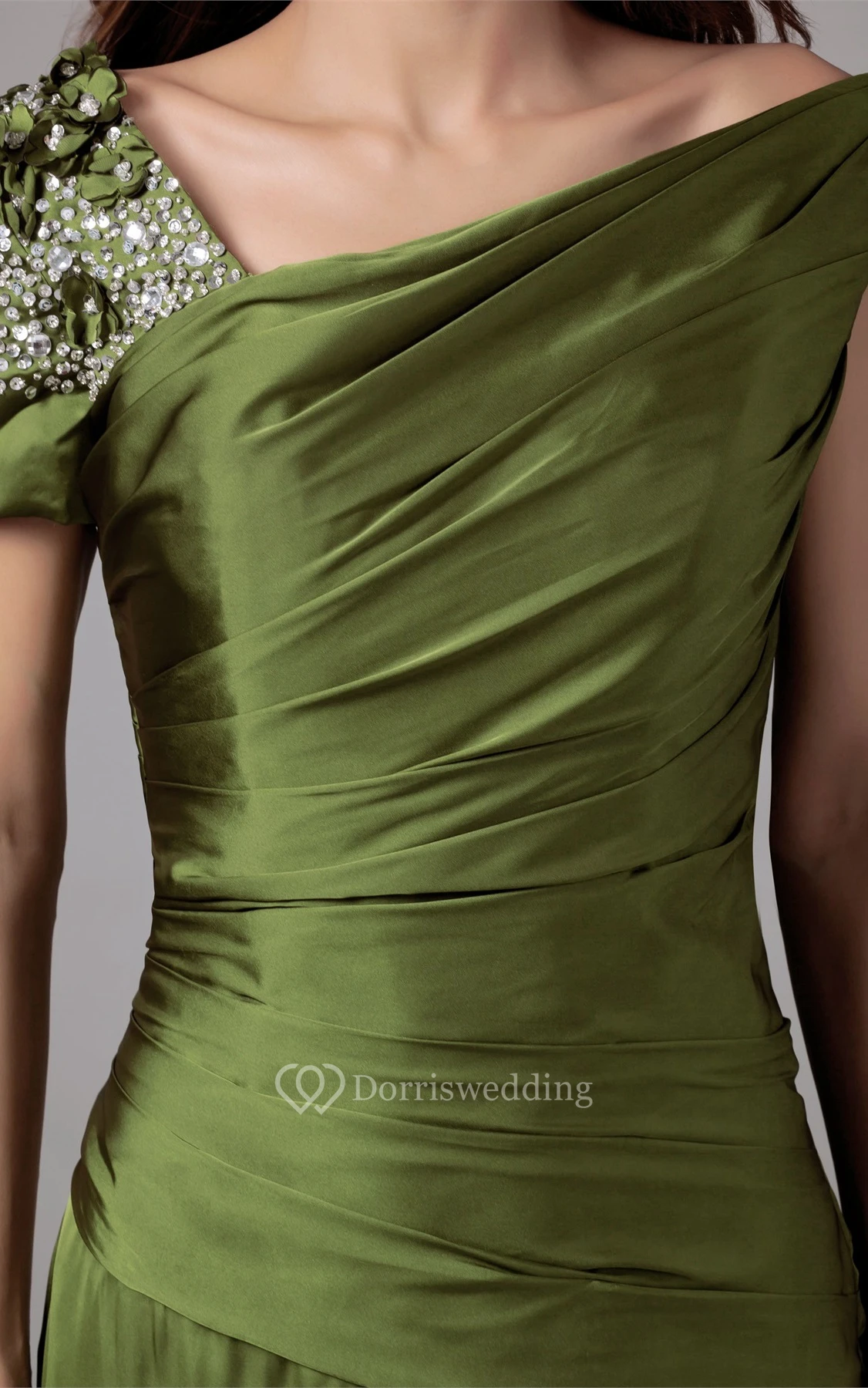Asymmetrical Mermaid Satin Rhinestone and Gown With Ruching