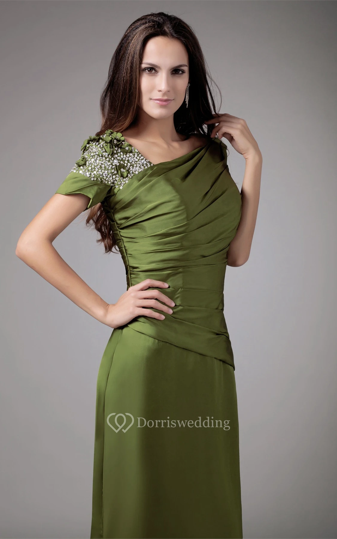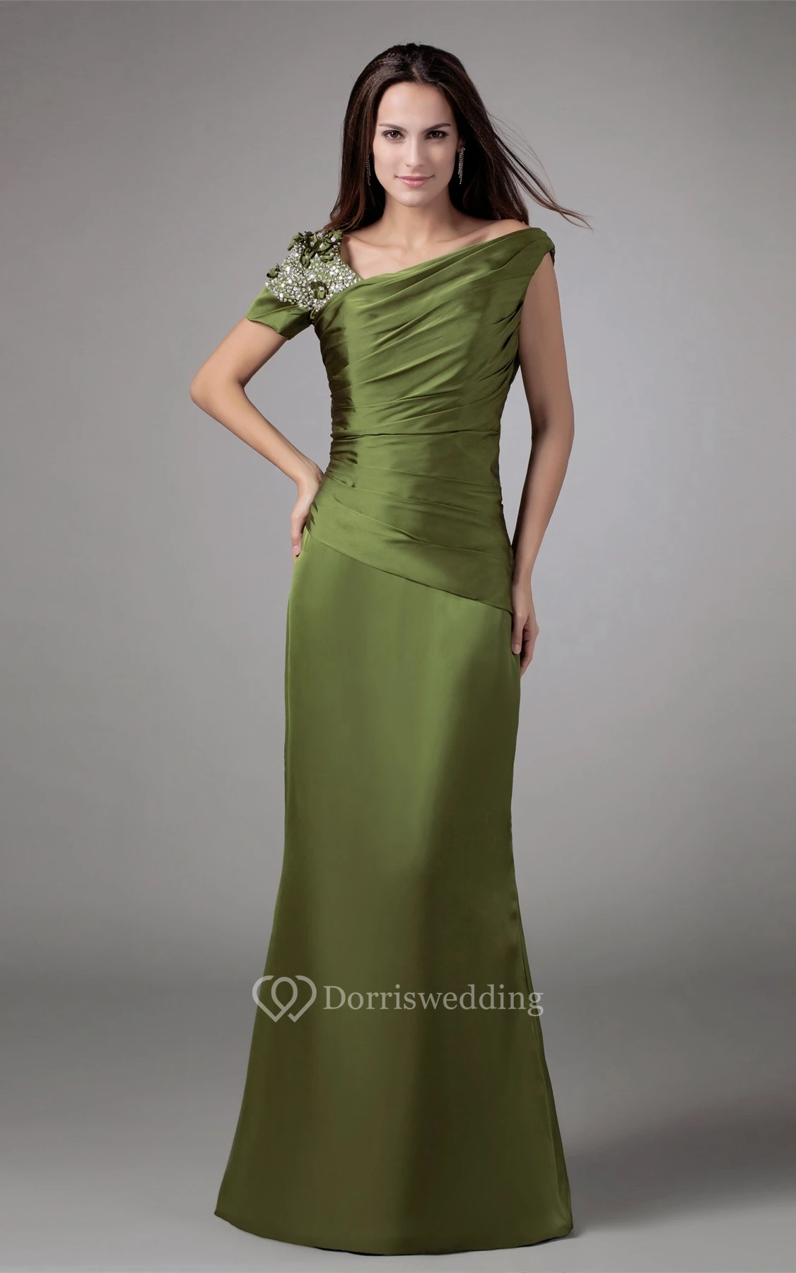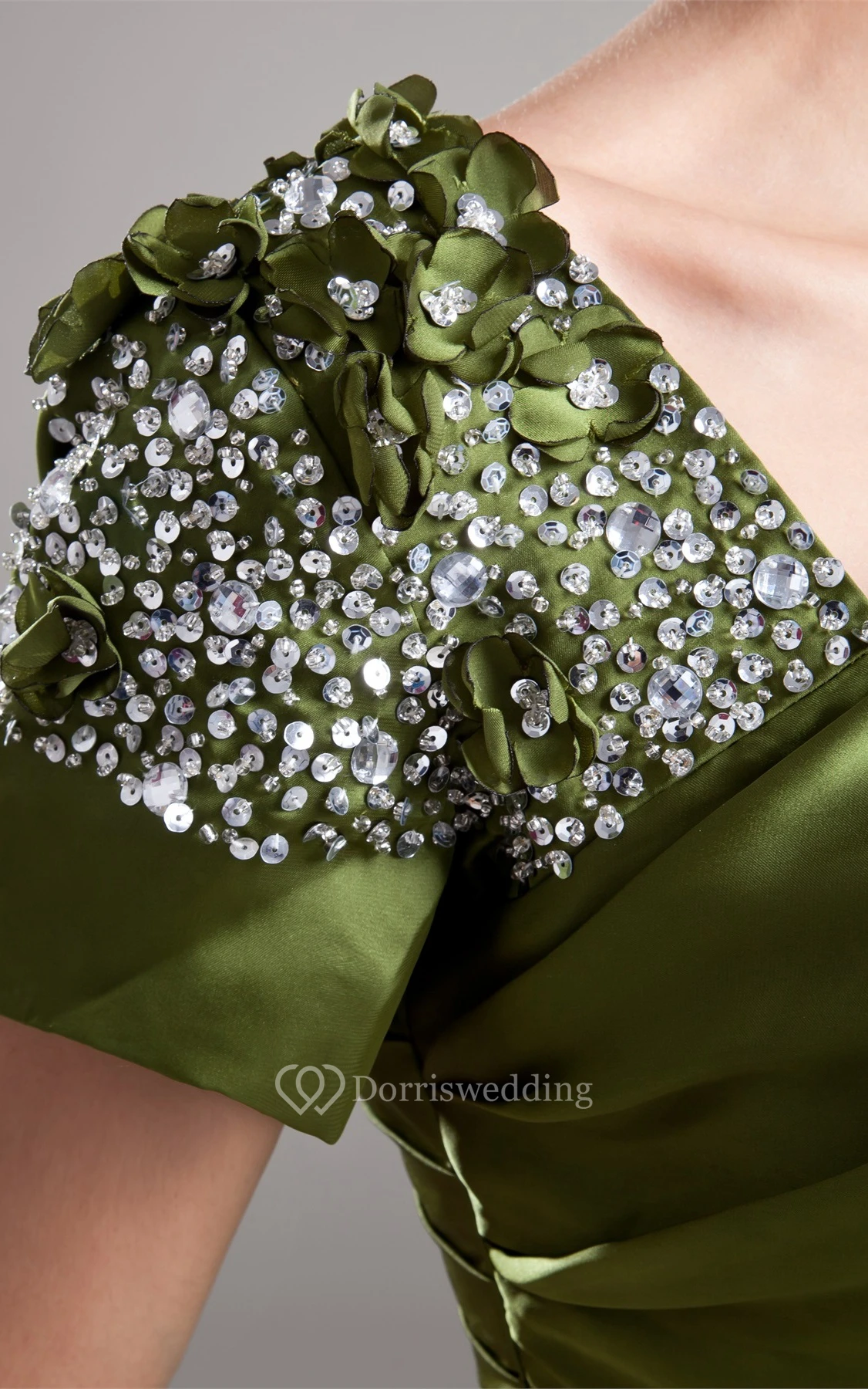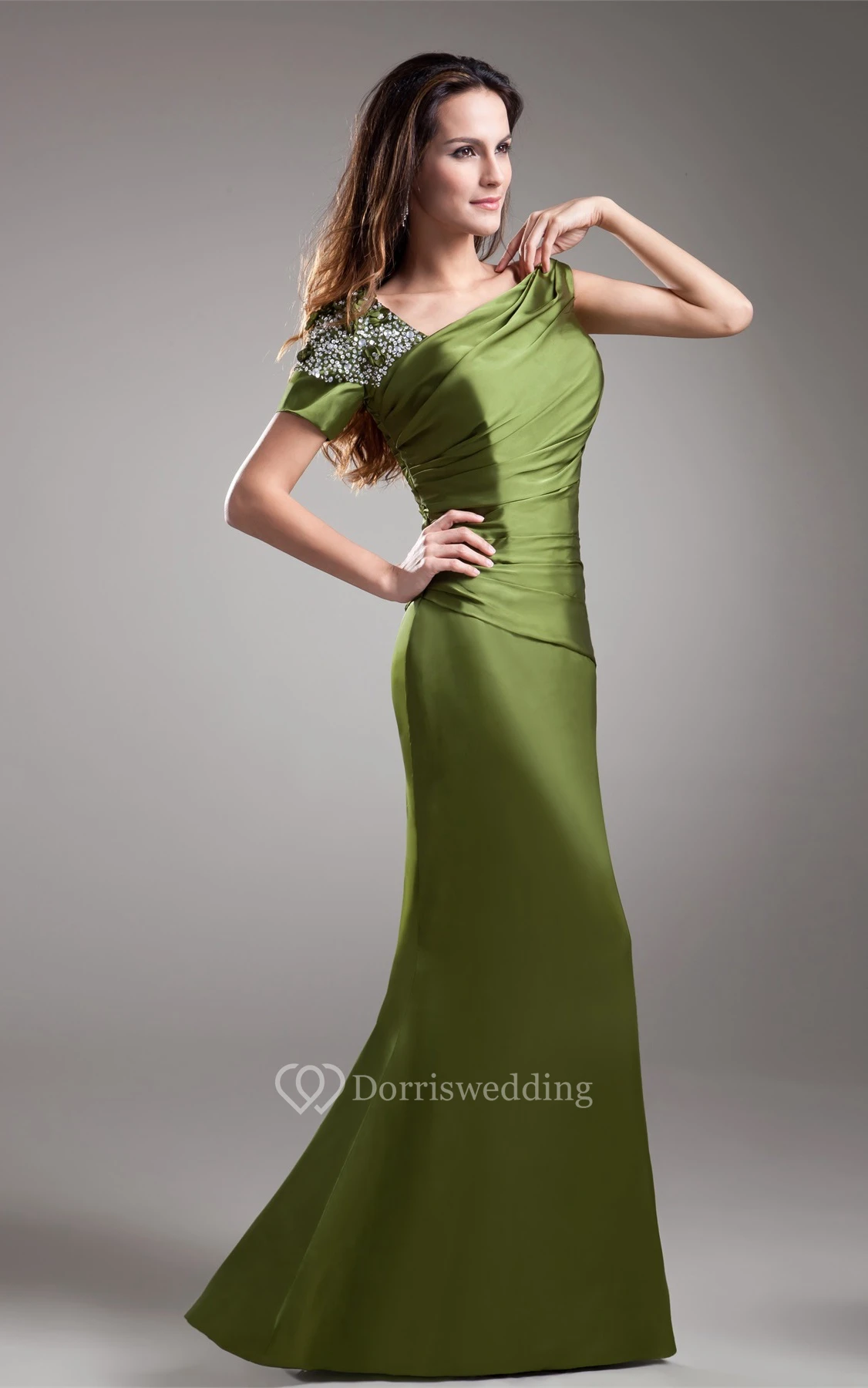 Asymmetrical Mermaid Satin Rhinestone and Gown With Ruching