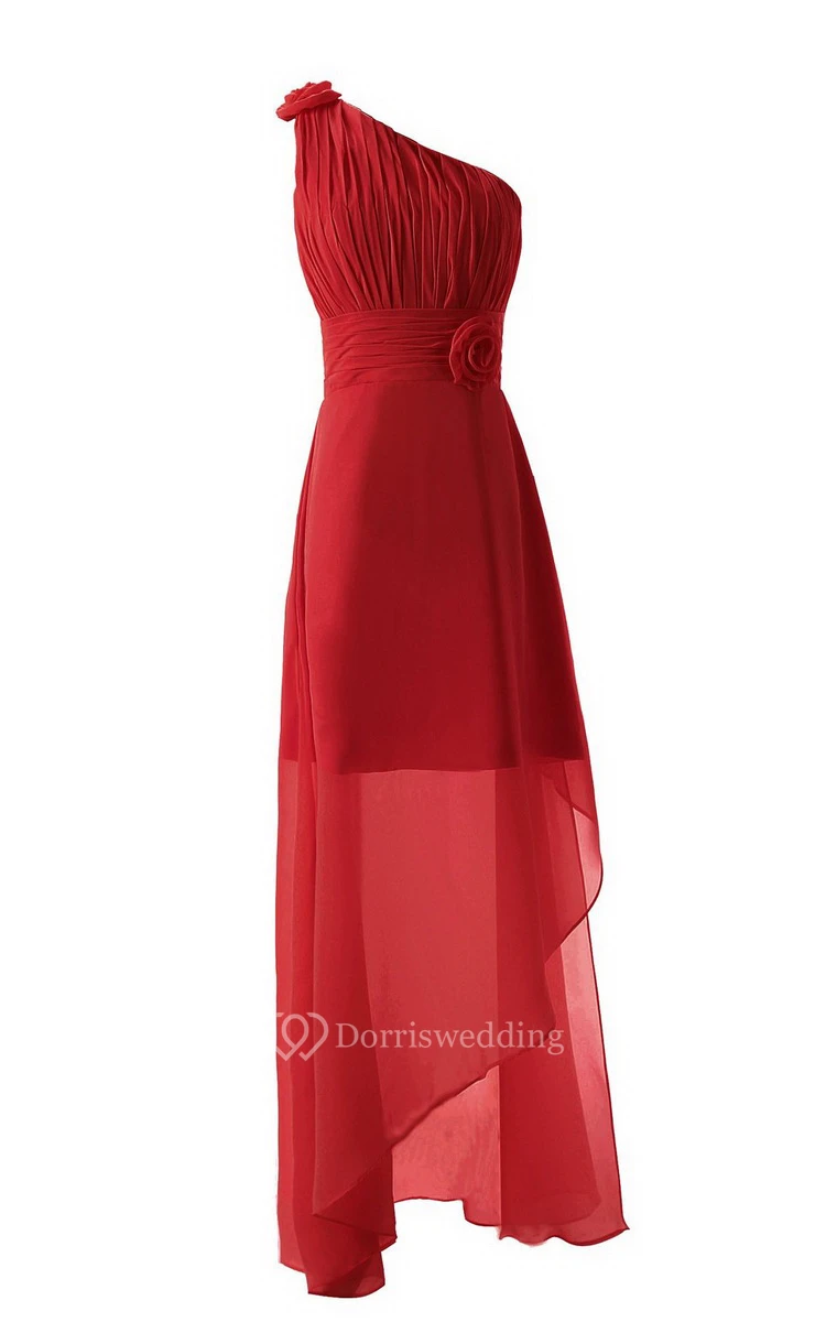 Asymmetrical One-shoulder Pleated A-line Gown With Flowers