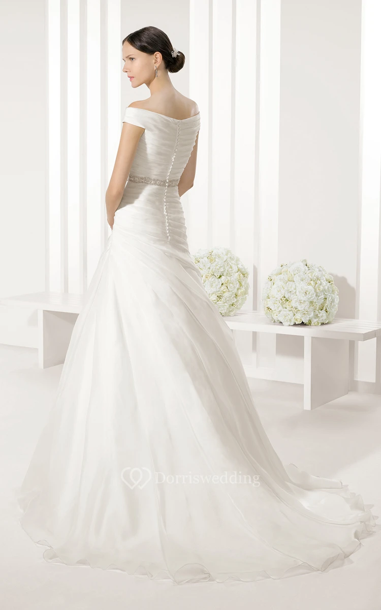 Asymmetrical Shoulder Off Gown With Beaded Sash