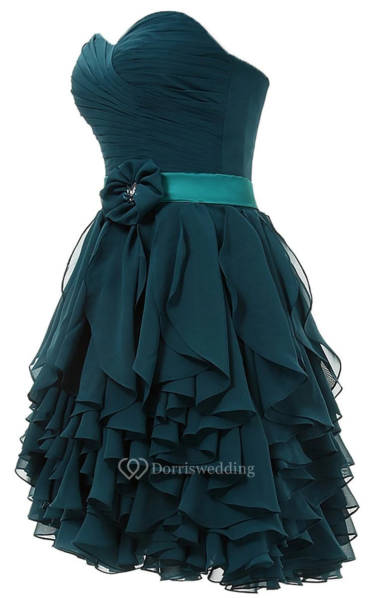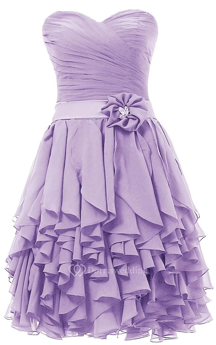 Asymmetrical Sweetheart Ruffled Short Dress With Floral Band