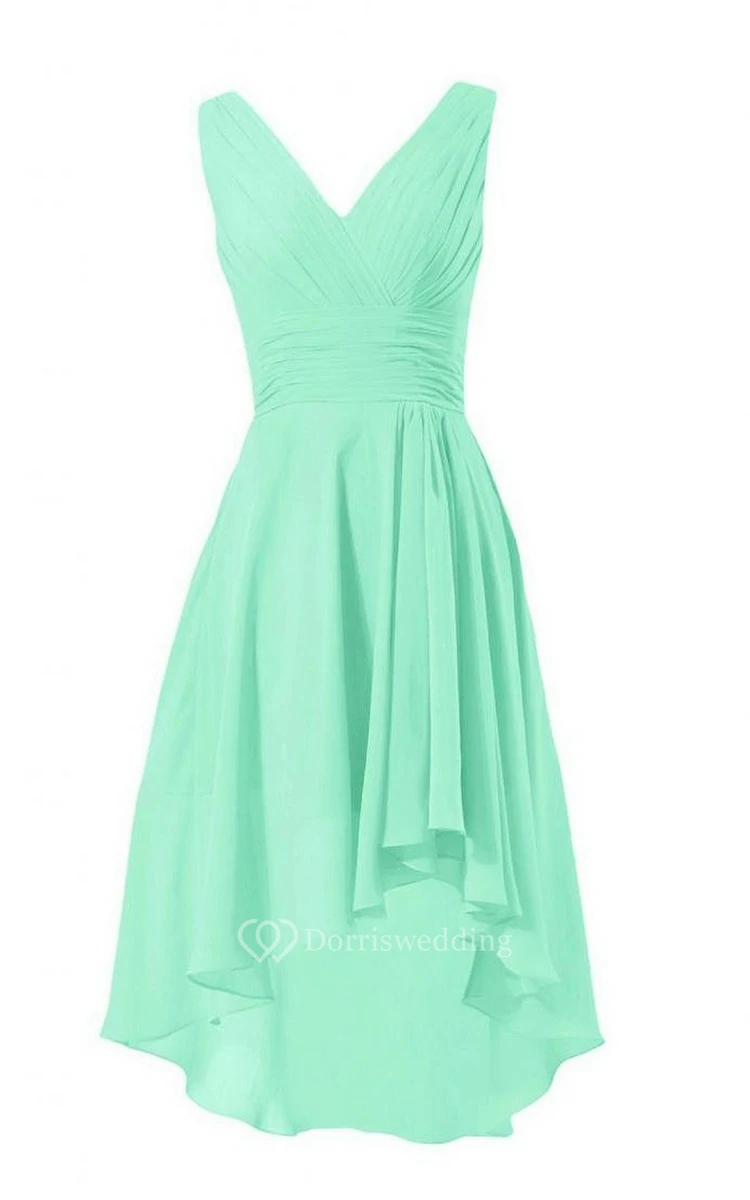 Asymmetrical V-neck Chiffon A-line Dress With Zipper Back