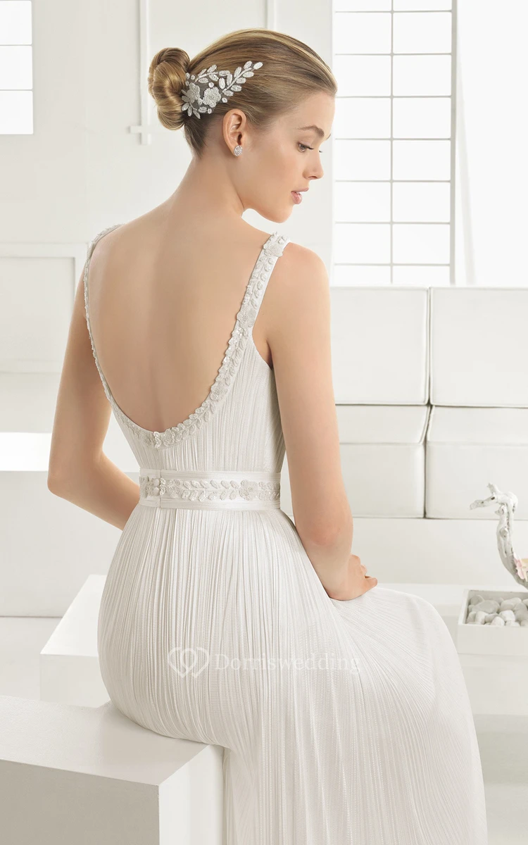 Backless Column Style Dress With Floral Straps