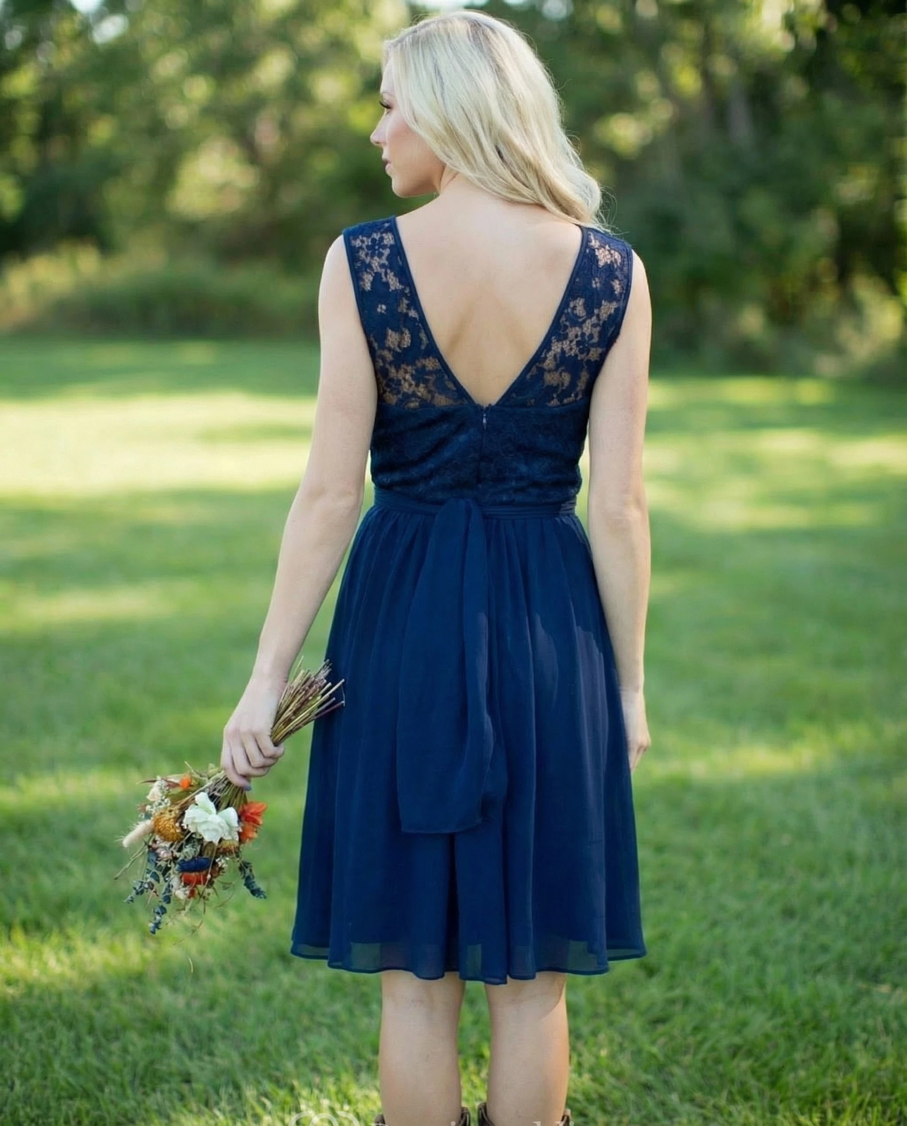 Backless Jewel Neck Chiffon & Lace A-Line Dress
