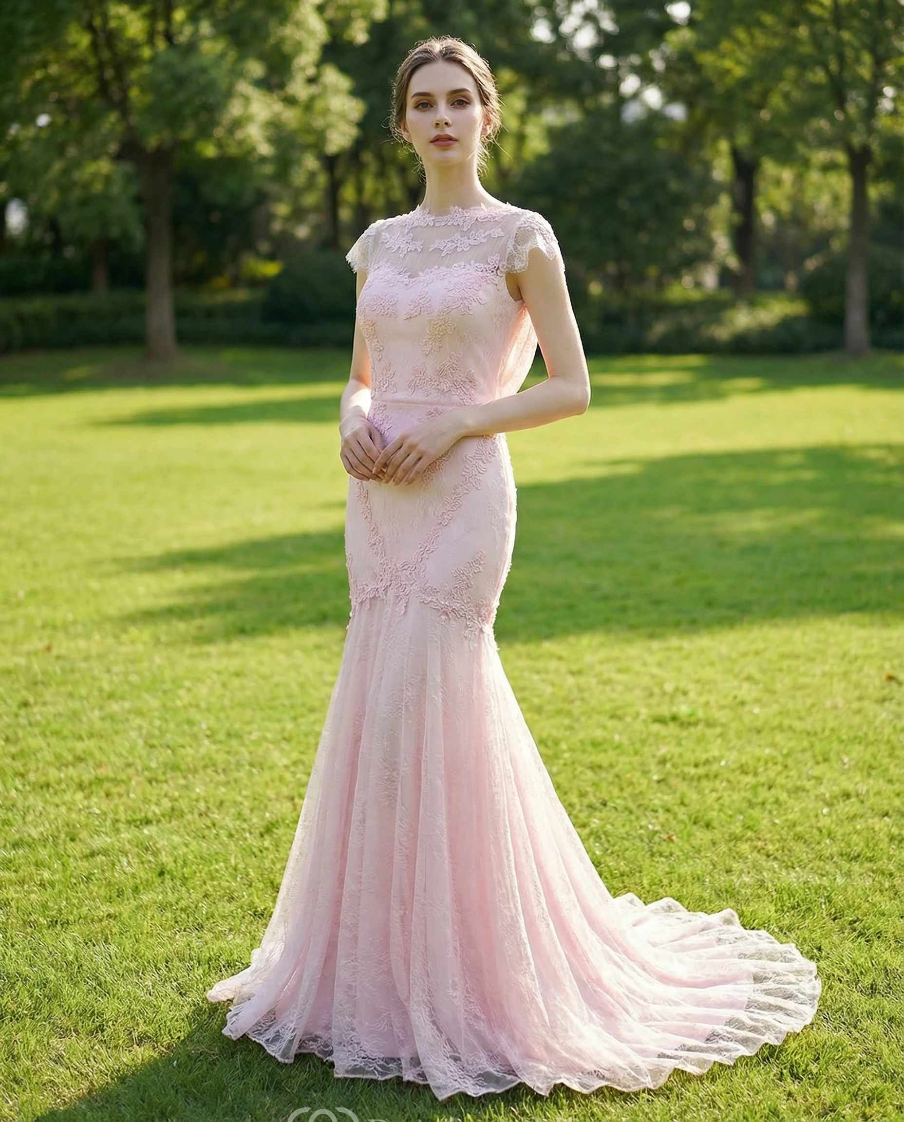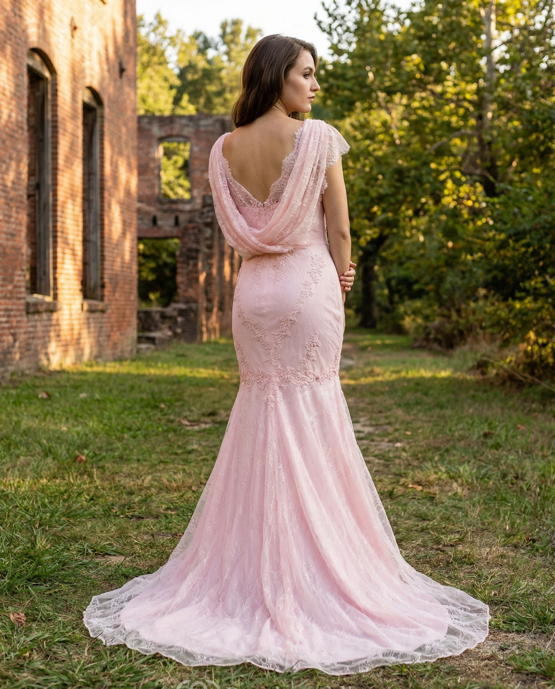 Backless Lace Mermaid Gown with Brush Train