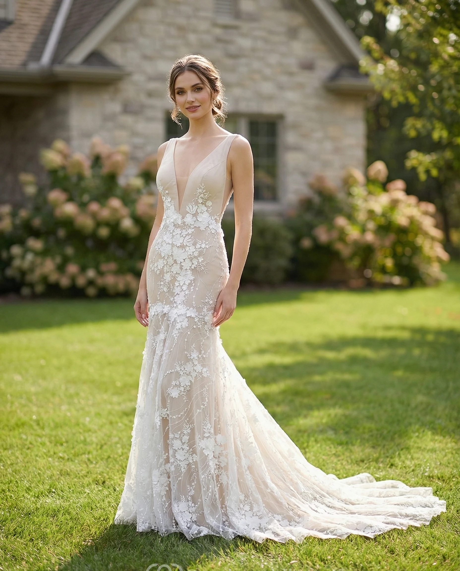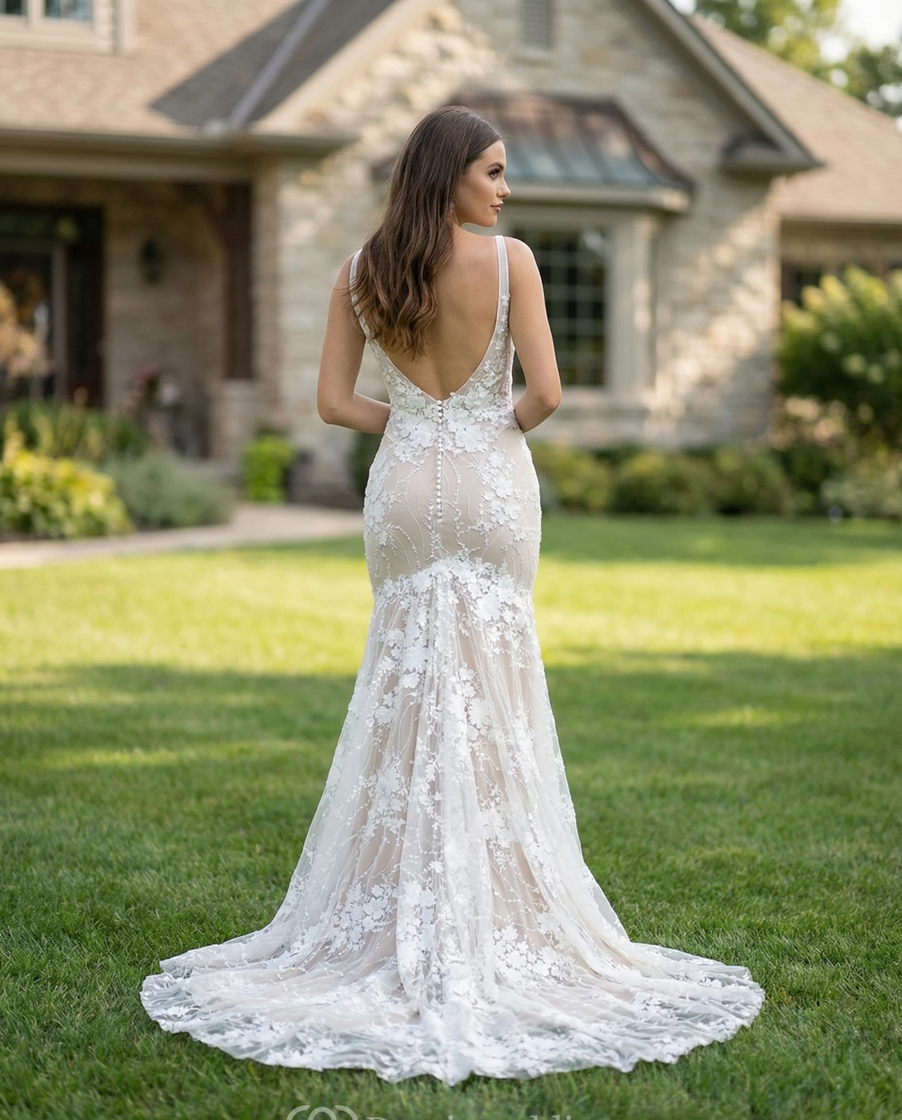 To make it easier for you to walk post-ceremony and dance, our seamstresses add buttons, or ribbons into the dress by lifting up the train or tucking it into itself.