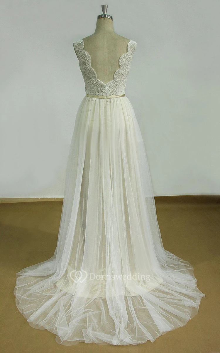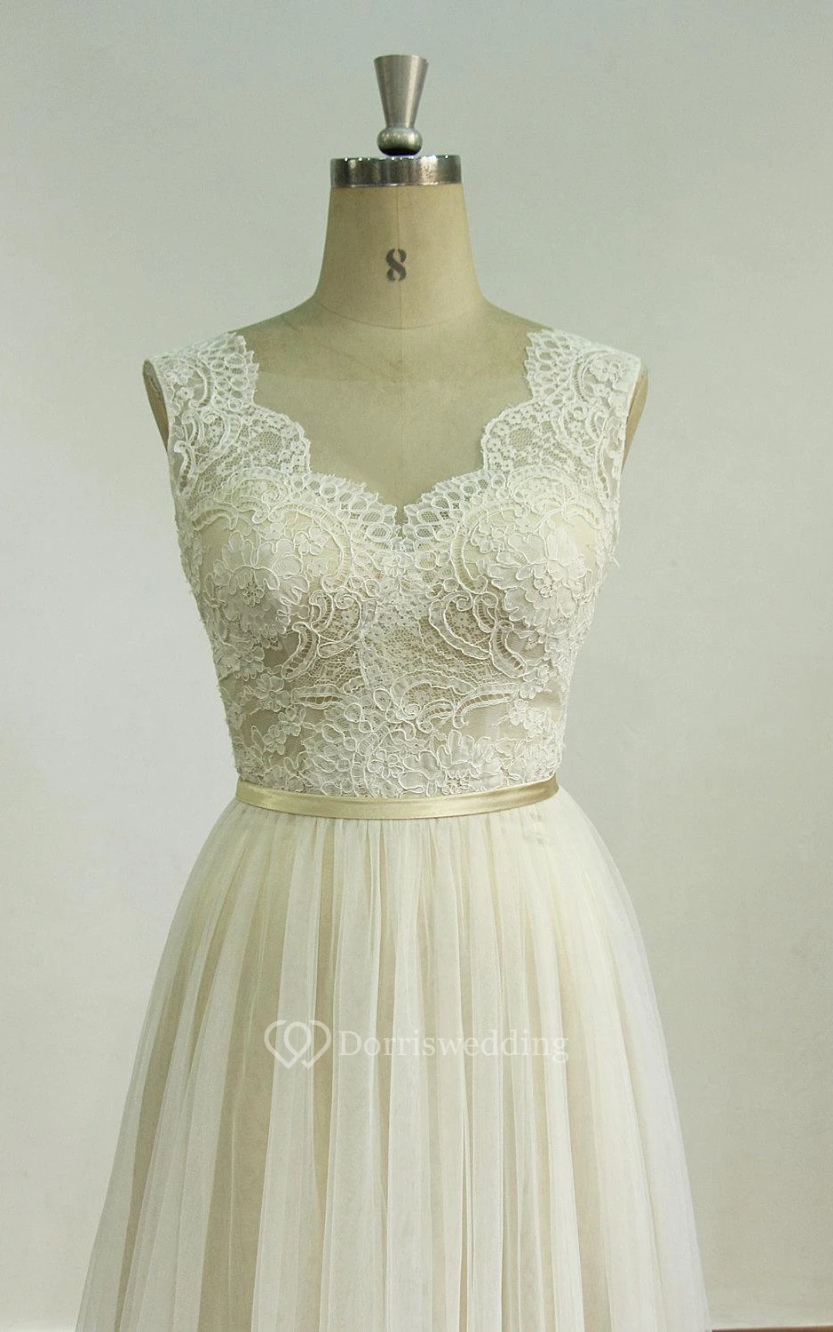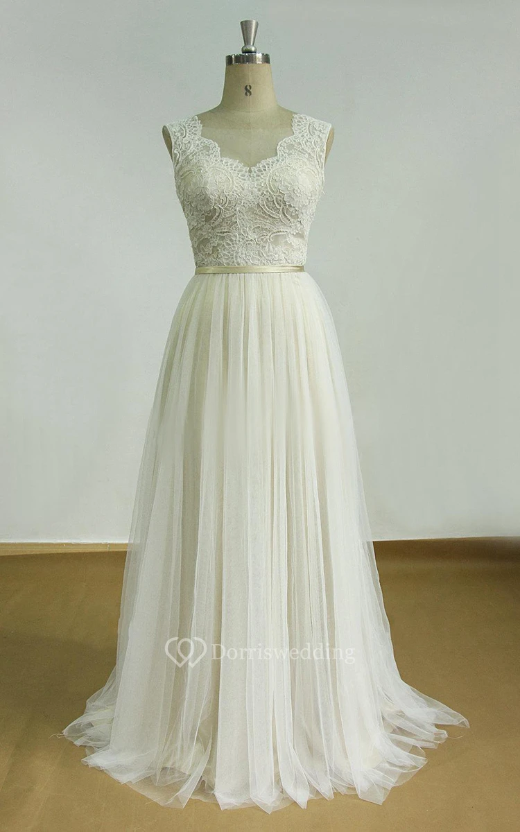 • Hemline/Train: Floor-length, Sweep/Brush Train