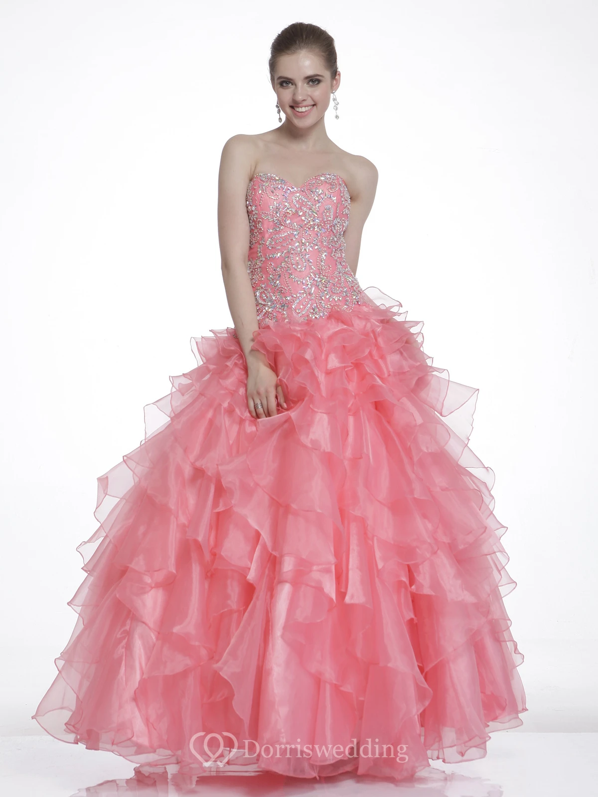 Ball Gown Ankle-Length Sweetheart Organza Lace-Up Dress With Ruffles And Beading