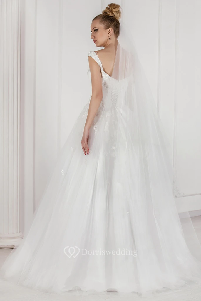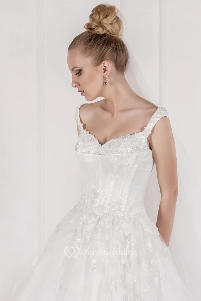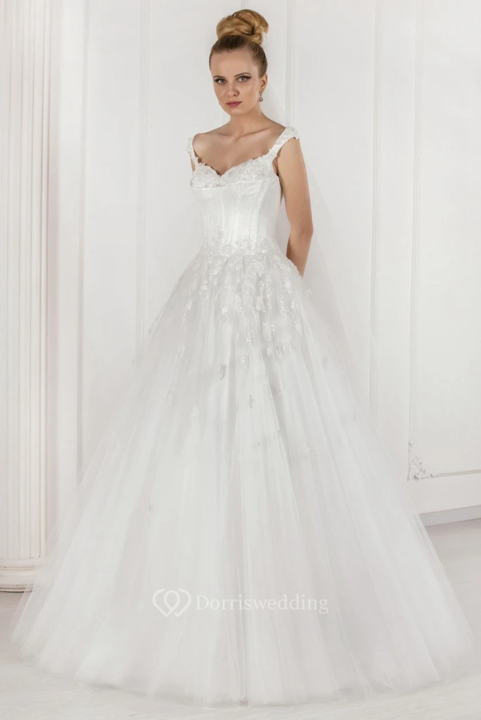 Ball-Gown Appliqued Floor-Length Sleeveless Tulle Wedding Dress With Pleats And Beading