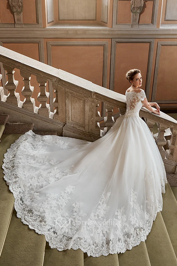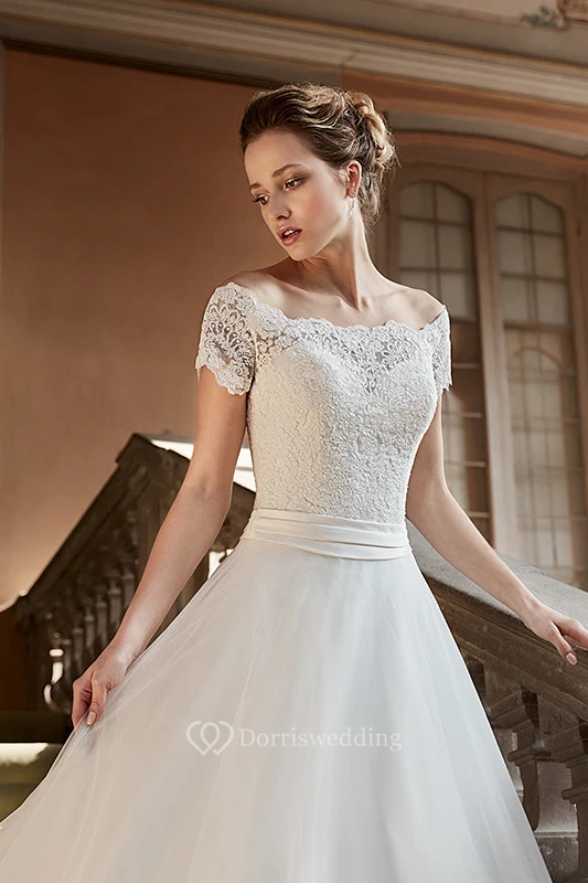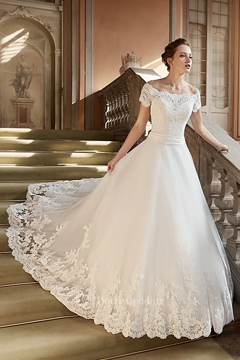 Ball Gown Appliqued Long Off-The-Shoulder Lace Wedding Dress