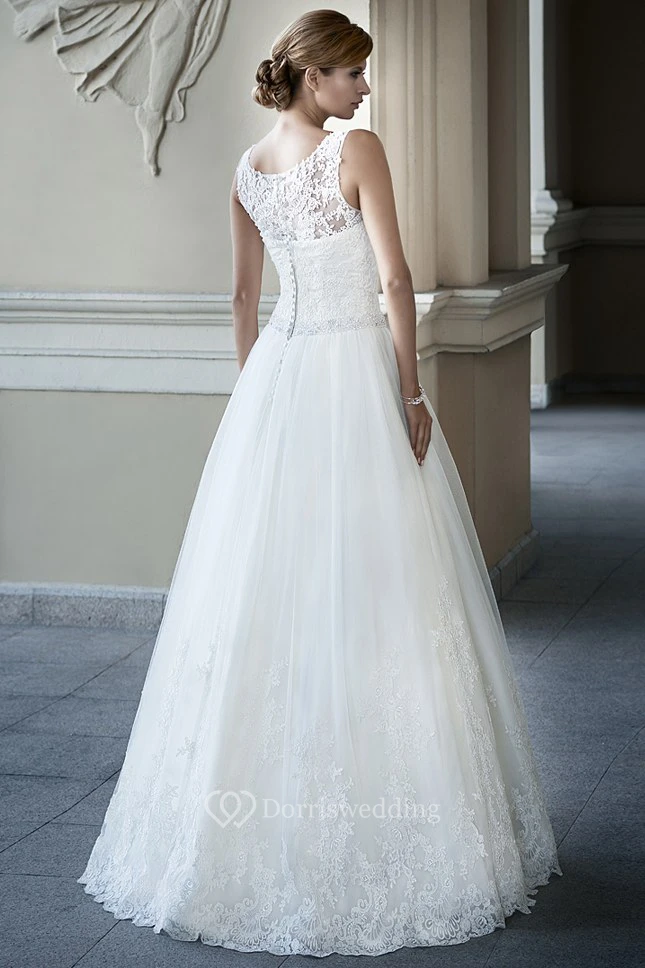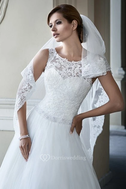 Ball Gown Appliqued Scoop-Neck Maxi Lace Wedding Dress