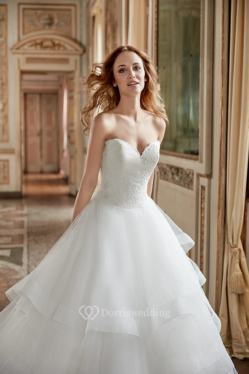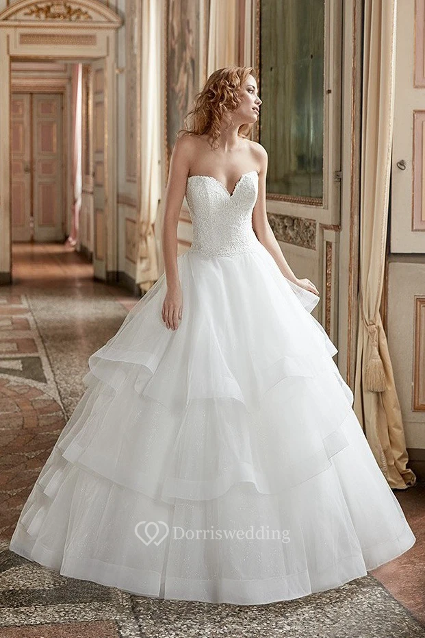 Ball Gown Appliqued Sweetheart Tulle Wedding Dress With Tiers