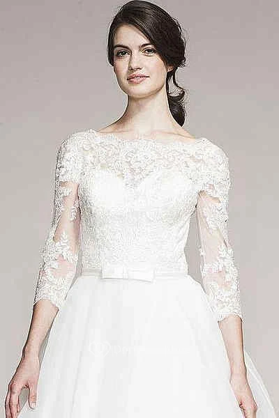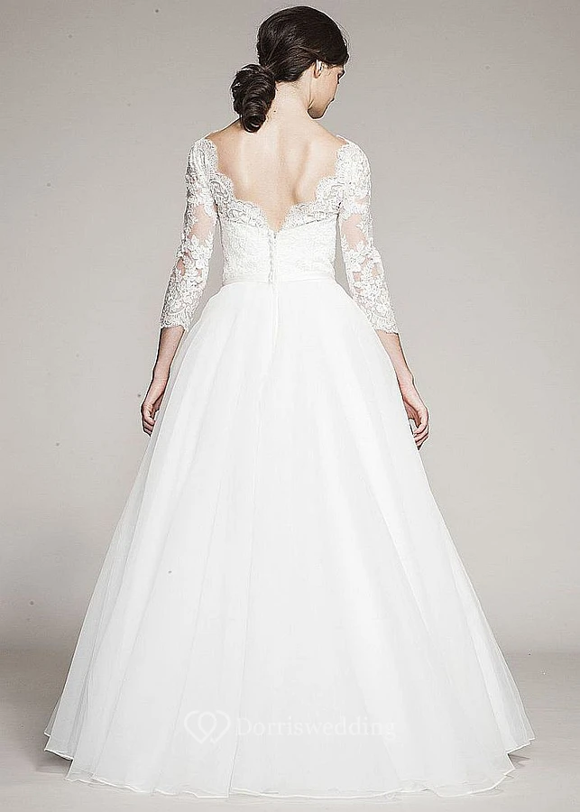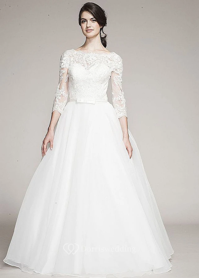 Ball Gown Bateau-Neck Long-Sleeve Organza Wedding Dress