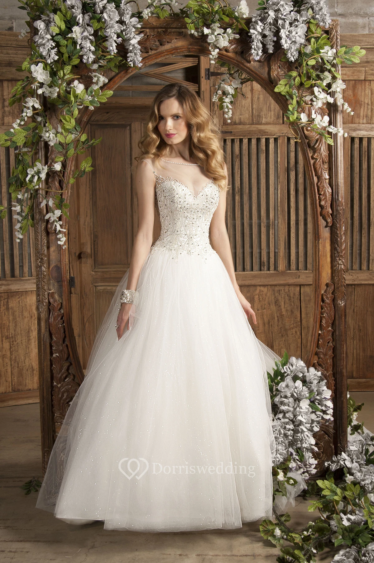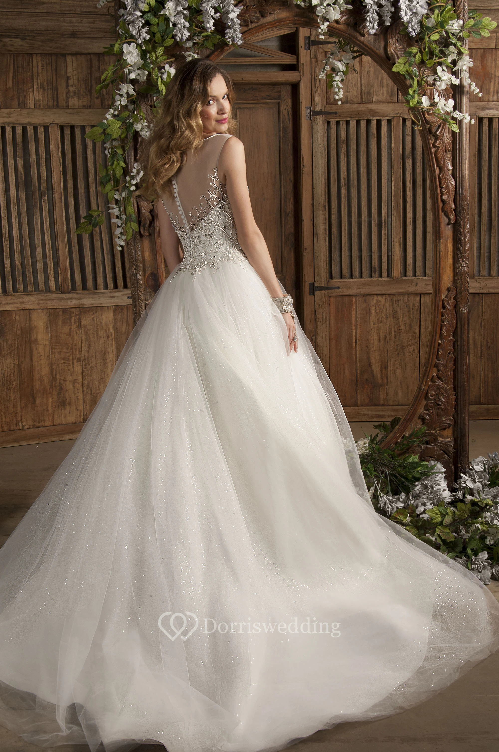 Ball Gown Bateau Neck Sleeveless Appliqued Tulle Wedding Dress