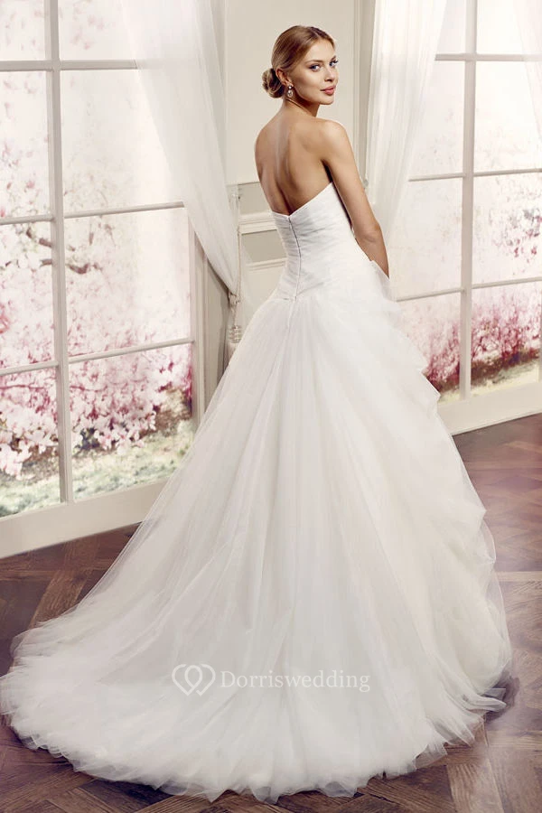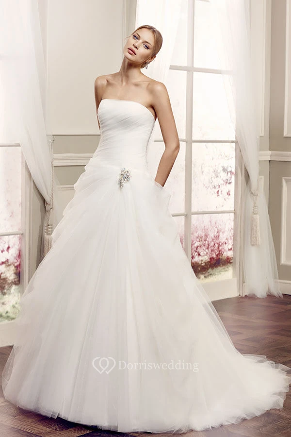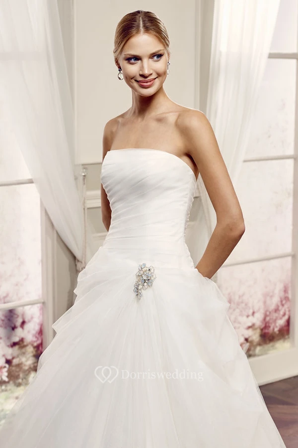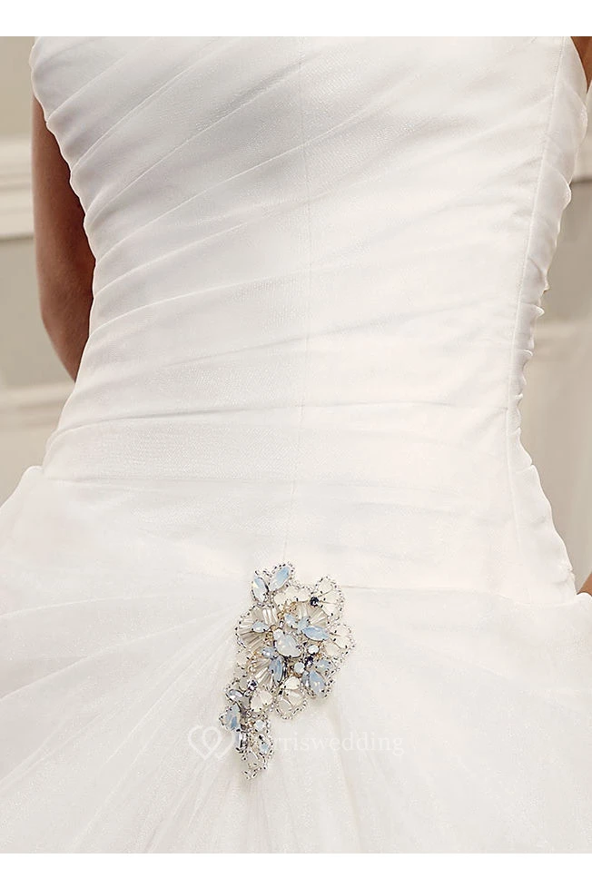 Ball-Gown Broach Strapless Sleeveless Maxi Tulle Wedding Dress With Backless Style And Draping