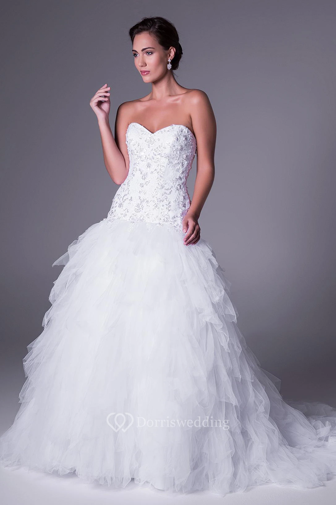 • Embellishments: Cascading Ruffles, Beading