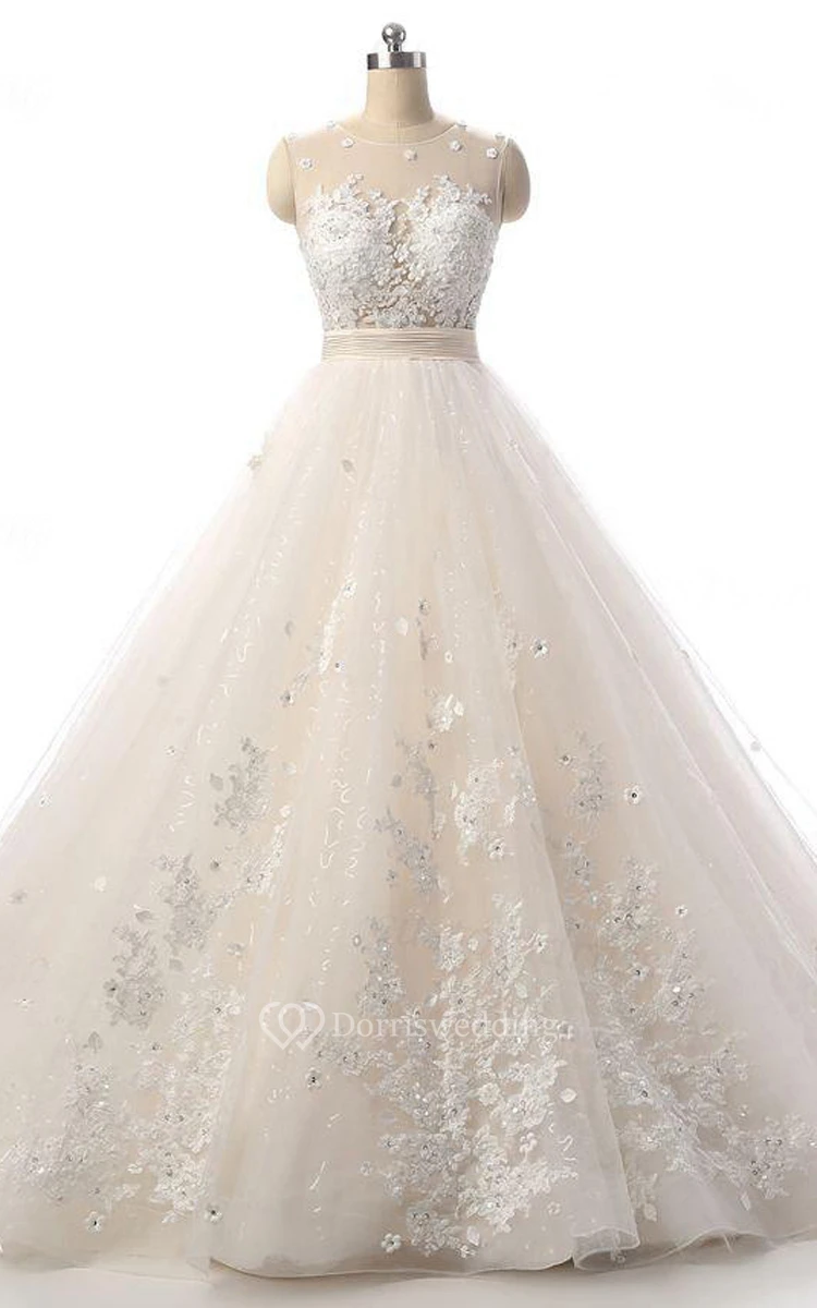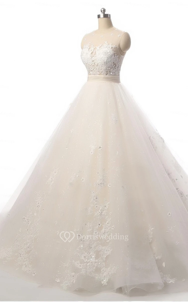 Ball Gown Court Train Lace Organza Weddig Dress