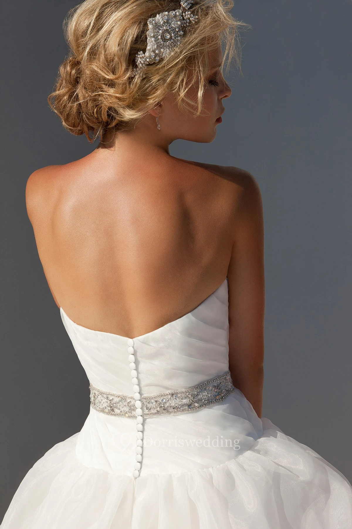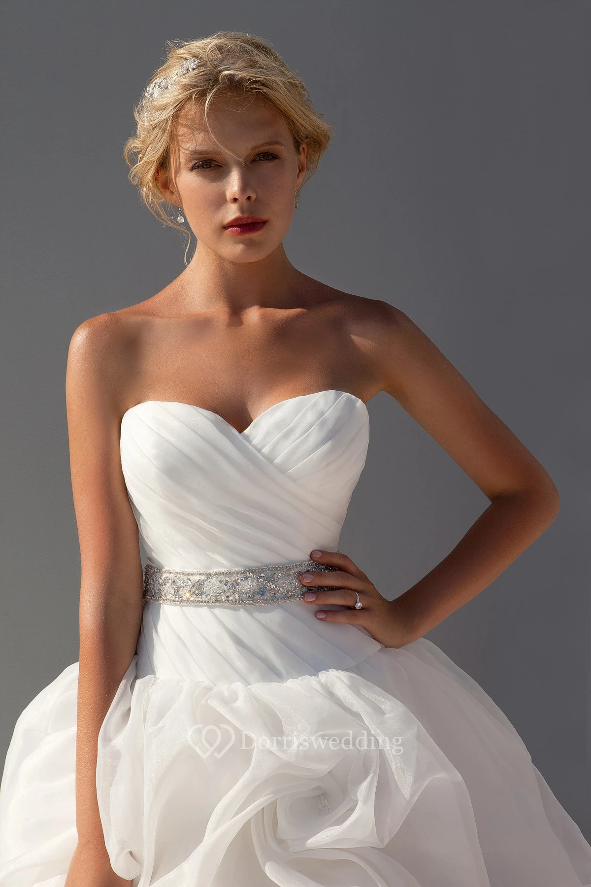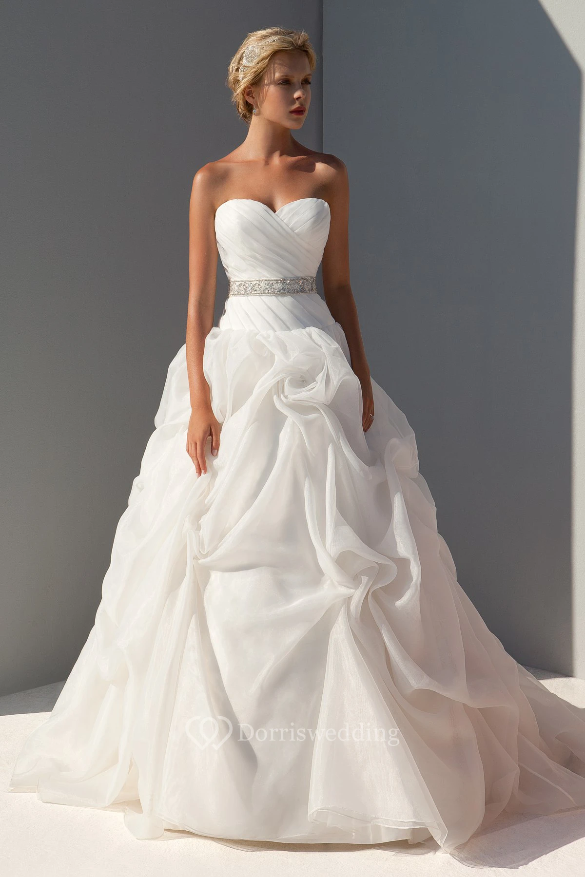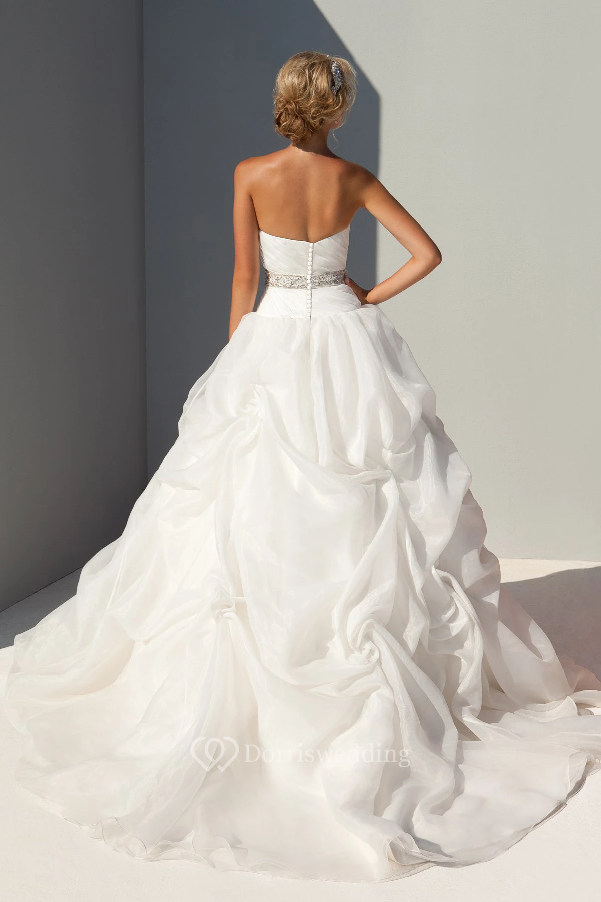 Ball Gown Criss-Cross Floor-Length Sleeveless Sweetheart Organza Wedding Dress With Pick Up And Waist Jewellery