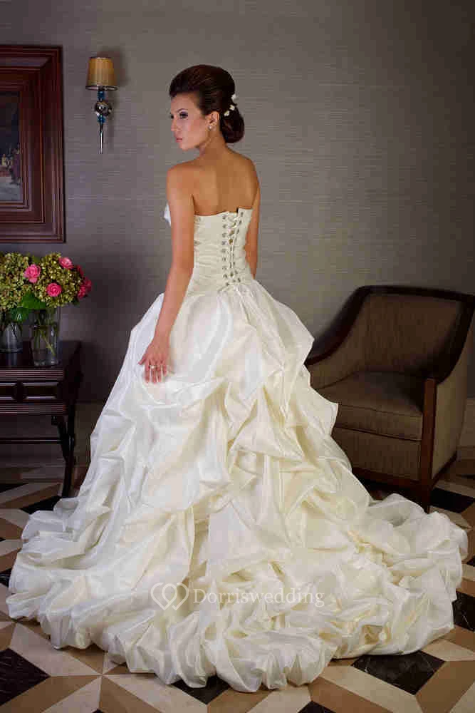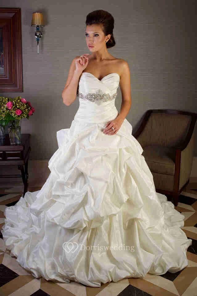 Ball Gown Criss-Cross Sweetheart Taffeta Wedding Dress With Pick Up And Waist Jewellery
