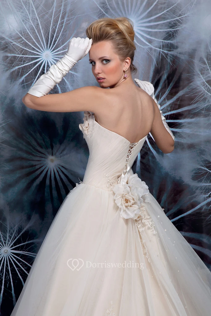 Ball Gown Criss-Cross Sweetheart Tulle Wedding Dress With Flower And Lace Up